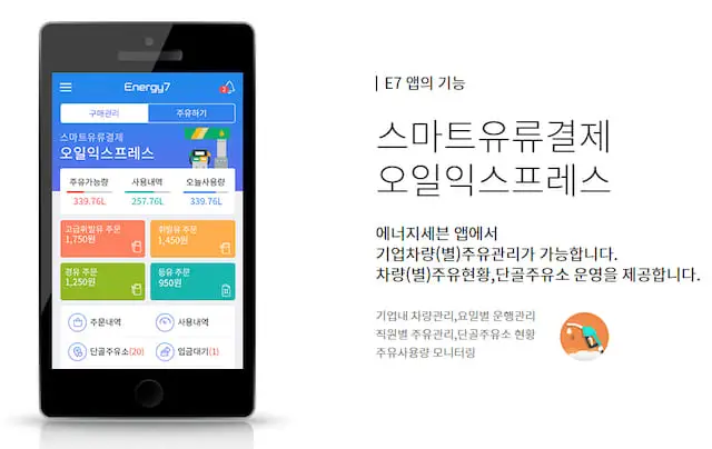 새로운 유류 유통 비즈니스 모델을 연구하는 국내 기업도 있습니다. '에너지 7'은 현재 스마트 유류 결제 시스템을 운영 중입니다. 간단히 말하면 법인 회원 유류권을 발급해 기업의 비용 관리를 도와줍니다. 농협 주유소와 제휴해 1,000여 개의 가맹 주유소도 확보했습니다. 제휴 업체를 넓혀가고 있는 상황이죠. 여기에 위챗페이나 알리페이의 결제 시스템도 갖췄습니다.