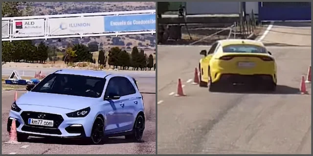 고성능 스포츠 세단 기아 스팅어는 마지막에 자세가 흐트러졌지만 전자 장비의 도움으로 시속 82km의 속도에도 코스를 무사히 통과했다. 다만 국내에 출시되지 않은 i30 N은 이보다 낮은 79km/h에서 코스를 벗어났다.