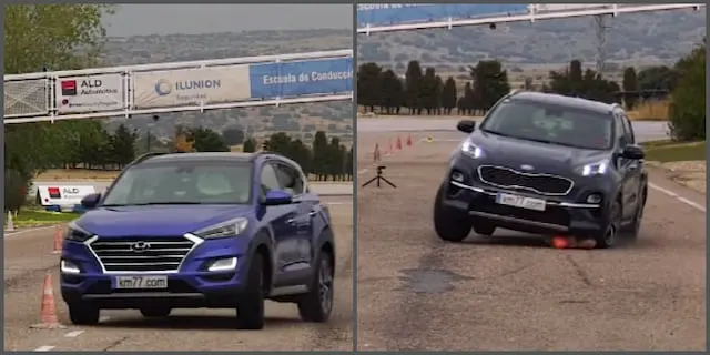 위의 두 모델보다는 상대적으로 키가 껑충한 스포티지와 투싼은 나란히 74km/h를 한계 속도로 나타났다. 시속 78km 이상으로 진입하자 러버콘을 접촉하거나 라인을 벗어났다. 여론의 뭇매를 맞았던 신형 RAV4와 비교하면 두 차 모두 우수한 모습이었지만 몸집이 좀 더 큰 Q5보다는 매끄럽지 못했다.