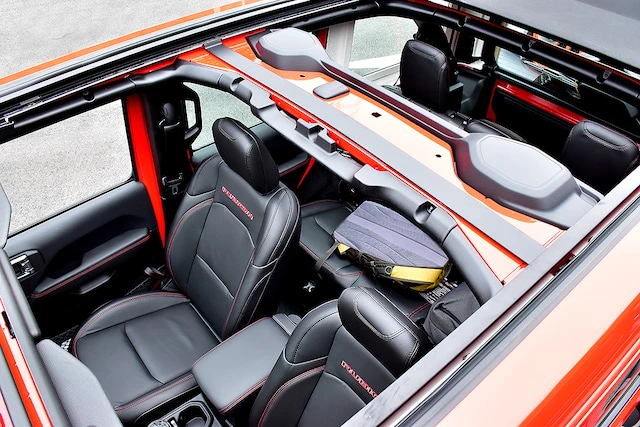 이런 랭글러를 선택해야 할 이유가 또 생겼습니다. 스위치만 '딸깍'하면 하늘을 볼 수 있는 파워탑 모델이 출시되었기 때문. 공구를 이용해 루프 패널을 떼거나 소프트톱을 손수 접을 필요가 없습니다. 전자동 소프트톱의 '루비콘 파워탑'을 만났습니다.