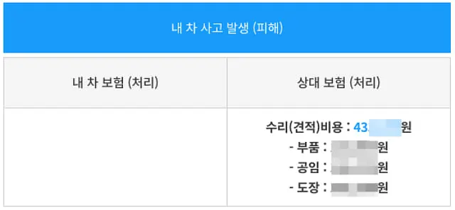 다음으로는 '보험 사고이력'을 봐야 합니다. 성능 기록부에 안 나오는 경미한 수리 비용까지 알 수 있기 때문입니다. 만약 보험으로 수리한 비용은 있지만 성능 기록부에는 이력이 없다면 어떻게 해야 할까요? 실제 사례로써 확인해 보겠습니다.