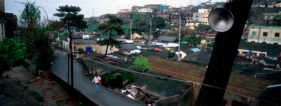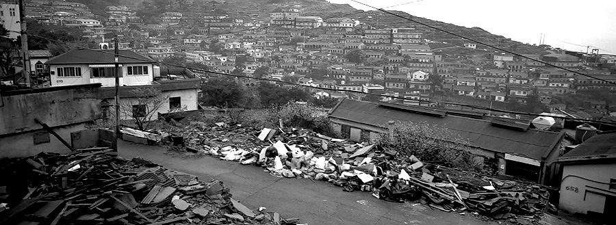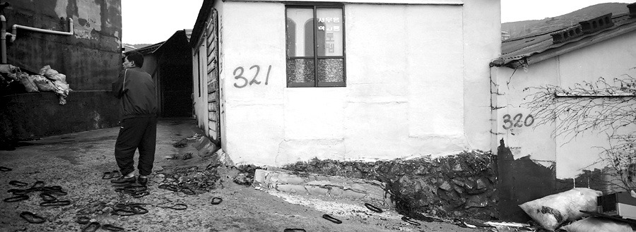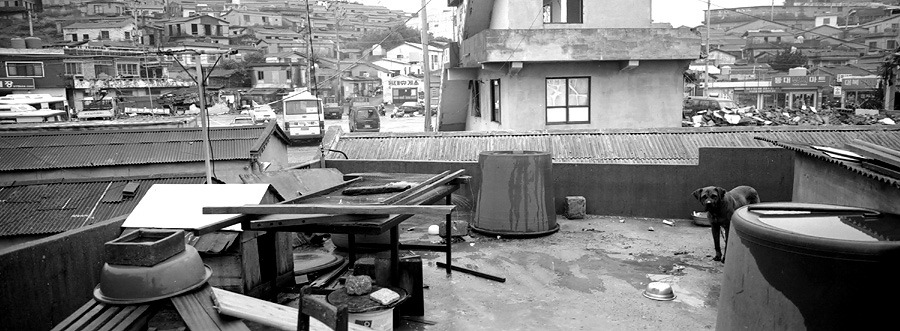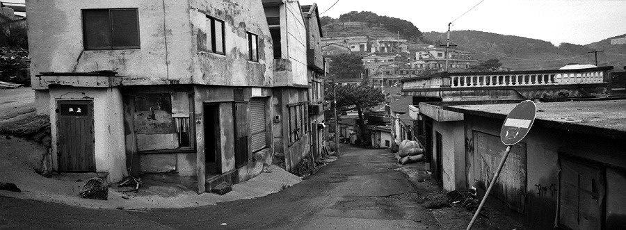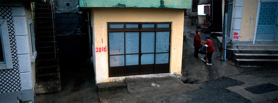 그는 용호동의 이미지를 담았다. 동네엔 작은 개들이 사라질 골목을 아쉬워하며 연신 짖어대고 있었고 높은 산 봉우리에 설치된 확성기에서는 재개발조합에서 흘러나오는 안내방송으로 작은 동네는 더욱 축축하게 가라앉아 보였다. 사라지는 모든 것들에 대해 아쉬움을 표할 필요는 없지만 해방 이후 만들어온 작은 집성촌이 어쩌면 구성원들이 원하지 않았지만 그렇게 정착될 수밖에 없었던 한센병 집성촌은 이제 거대한 아파트 단지로의 변화를 눈 앞에 두고 있다.