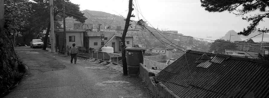 언제인가 부산 국제 영화제 주간에 문득 TV를 보다가 장선우 감독이 만든 " 성냥팔이 소녀의 재림"이란 영화의 무대 배경이 되었다는 장소에서 조감독과 사회자가 영화 에세이 프로그램을 진행하는 것을 목격하고는 그는 그 프로그램의 배경지가 된 부산 용호동이라는 곳에 깊은 관심을 가지게 되었다. 오륙도를 동그랗게 안고 있는 바다가 보이는 잔잔한 산골짜기에 노인의 주름살처럼 깊게 패인 주검 같은 집들과 공장들. 끝도 없이 이어지는 산허리의 낡은 공동주택들의 이미지는 그에겐 단 한 번도 이 땅에서 구경할 수 없었던 깊은 이미지로 날카롭게 각인되었다. 여기는 어디일까?