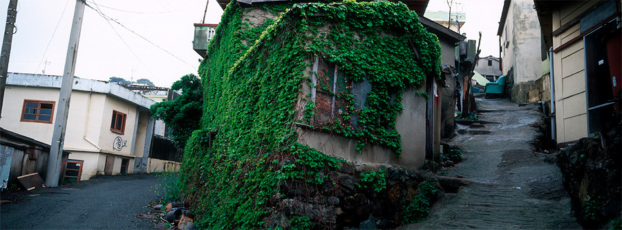 어찌 보면 나도 그런 낯선 방문객이었던 셈이다. 부산에 사는 사람들도 평생 한번 가 보지 않았다고 실토할 만큼 일반인들과 오랫동안 격리되어 있던 작은 마을 용호농장은 그렇게 개발의 막바지 기로에 서 있었다. 아주머니가 소개한 것처럼 용호동 마을은 아름다운 골목들을 많이 간직하고 있었다. 어디에서도 조망할 수 있는 바다의 풍경이 있고 사람들은 직접 손으로 돌담을 쌓아 거기에 담쟁이를 길렀다. 산 위쪽의 가구공장과 집들은 이미 많은 사람들이 외지로 빠져나갔음을 보여주듯 적막하기 이를 데가 없었다. 아마 마을버스가 드나드는 작은 마을의 중심부도 이제는 떠날 채비를 하며 다가오는 개발을 기다리고 있으리라.