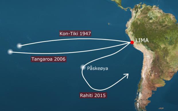 배의 이름은 '콘티키'로 잉카제국의 언어로 '태양신'을 의미한다. 헤위에르달은 동료 5명과 함께 1947년 4월 28일부터 같은 해 8월 7일까지 기원전 잉카제국에서 사용했던 뗏목을 재현한 이 배를 타고 페루를 출발해 태평양의 해류와 바람만을 의지하는 8,000㎞의 항해 끝에 폴리네시아의 투아모투 제도에 도착했다.