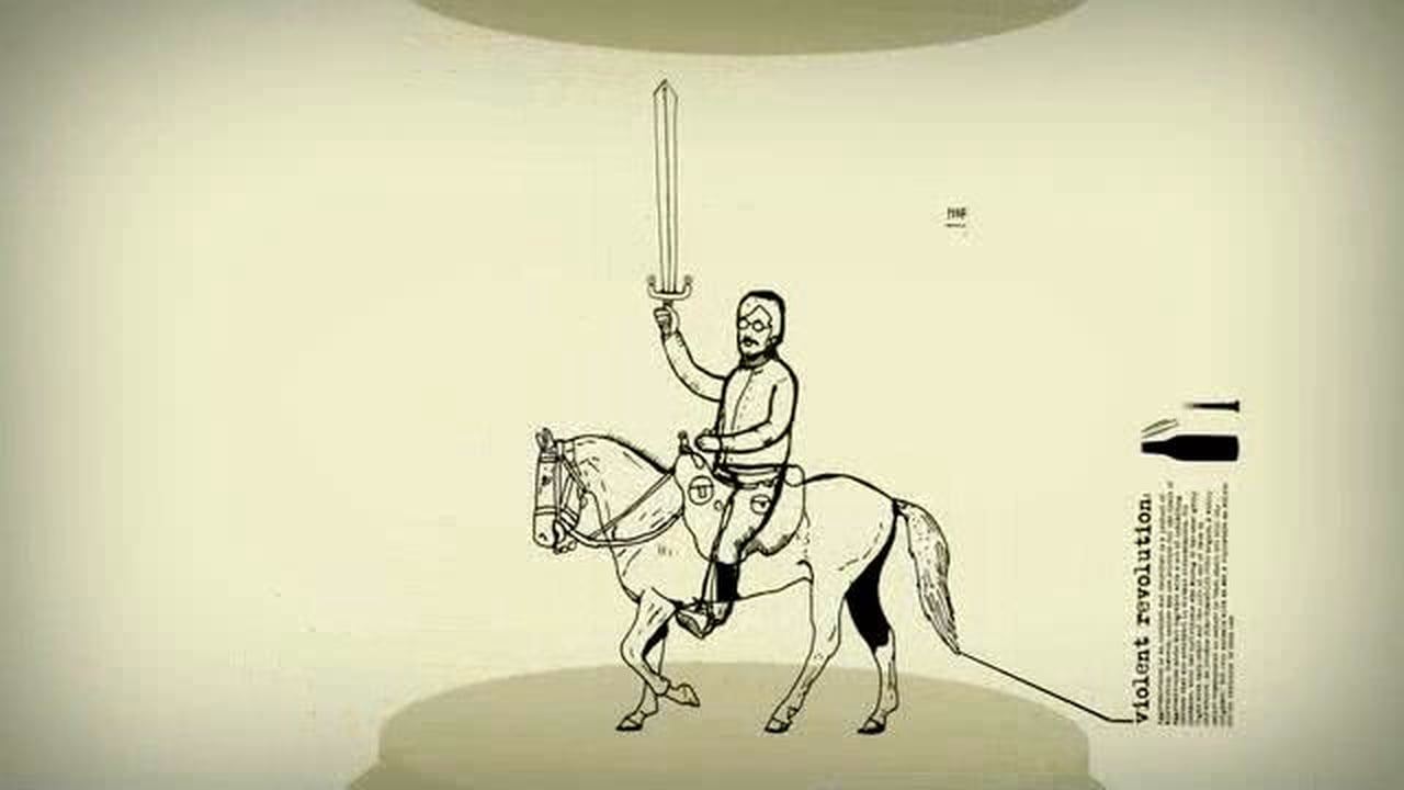John : 너희 스스로를 돕는 게 나를 돕는 거지. [아이의 머리카락에서 시작되어 그려지기 시작한 존의 얼굴 뒤에 존을 조작(?)하고 있는 젊은 사람의 모습이 형상화된다] 군사적 혁명가(급진주의자들)에게 군사적으로 일어난 혁명 (운동) 중에 단 한 가지라도 처음의 약속대로 된 혁명 (운동, 전쟁)들이 있는지 한 번 물어보렴. [앞서 젊은 사람이 매달려 있던 봉(poll)에 ‘1’이라고 쓰여있는 깃발과 함께 승마해 있는 군인이 나타난다. ‘1’이라는 숫자가 깃발에 써져 있는 건, 아무래도 깃발이 군사적(폭력적)인 혁명(내지는 전쟁)의 목표나 취지를 상징하는 거 같다_번역자의 주] 그들이 하고 있는 건 단지 그곳을 부수고 다시 짓는 것을 반복하는 것뿐이야. 그리고는 제정 왕국이 되어가는 거지. [지구가 잘게 쪼개지고, 쪼개진 지구의 부분 부분들을 다시 지어나가는 사람들…그리고 그 꼭대기에는 제정시대의 옷을 입은 사람들이 등장한다] 때려 부수는 건 가치가 없지만, 기계(물질적 생산수단) 들을 위한 공간을 확보하기에는 편하거든. 우리가 해야 할 일은 저항인데, 그건 비폭력적인 저항이어야 해. 왜냐하면 폭력은 또 다른 폭력을 야기하기 때문이야. 네가 만약 거칠게 저항한다면 너도 얻어터지고 마는 것, 그뿐이거든. 그게 우주(만물)의 이치란다. 그들은 모든 무기(폭력의 수단)를 가졌고, 그들은 모든 자본을 장악했어. 싸우는 방법 또한 알고 있지. 오랜 시간 동안 우리를 억압하며 그들이 그래 왔기 때문이지. 그들이 모르는 게 한 가지 있다면 그건 비폭력과 유머(웃음) 일 테지. 그리고 평화를 촉구하는 방법이 많다는 것도 모르고 있을 거야. 평화를 추구하는 모든 것들.. 평화에 오줌을 누는 것 [강아지가 소변을 본다], 평화를 위해 웃음 짓는 것, 평화를 위해 학교에 다니는 것, 평화를 위해 학교에 다니지 않는 것 등 네가 하는 모든 것들은 그 자체로 평화를 위한 것이지. 무엇을 하든지 그건 사람들에게 달렸어. 너는 ‘정부(정치집단)가 전쟁을 야기하고 있다! 그들이 우리를 전쟁으로 이끌어가고 있다!’라고 하면서 정부를 비판해서는 안돼. 실은 우리가 그것을 허락하고 있는 것이거든. 우리가 진정 원한다면 바꿀 수가 있는 거야.