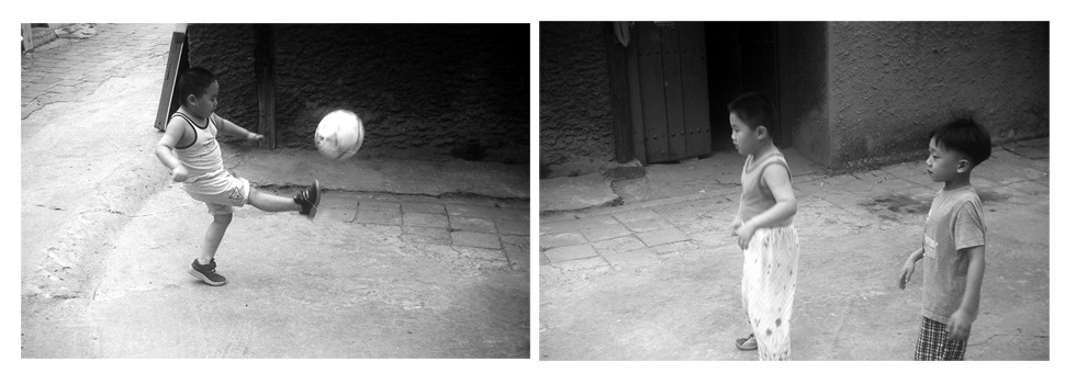 동네 골목 어귀... 동네 아이들이 학교에서 돌아와 골목에서 공놀이를 한다.... 아예 잠자리 옷을 입고 태평하게 노는 녀석들... 생김새를 보니 두 놈은 형제고 한 녀석은 그냥 동네 형이다. 그렇게 시간이 무심하게 지나가고 이런 태평한 골목의 시간을 언젠가 다들 잊어버리겠지만... 나는 아직도 그 태평한 시간을 잊지 못하고 있다. 늙은 아이로 그렇게 나이가 들어가면서.....