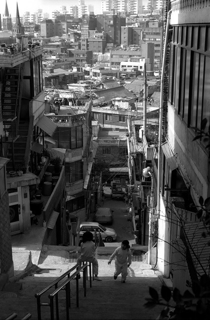 하지만 개발논리에 따라 어른들이 만들어 놓은 작은 골목 세계에서 아이들이 할 수 있는 것은 이제 별로 없어 보인다. 조그만 구멍가게 앞에서 동전을 넣고 잠시 동안 즐기는 미니 오락기, 동네 만화가게에서 재미난 만화를 빌려오며 친구들과 티격태격 말싸움을 주고받는 재미. 그 흔했던 다방구나 오징어 게임을 하는 애들은 볼 수가 없다. 재개발의 도심 속에서 심하게 소외되어 가는 아이들을 볼 때마다 가난하지만 그래도 함께 살았던 예전의 동네 골목이 새삼 떠오르는 이유는 무엇일까?