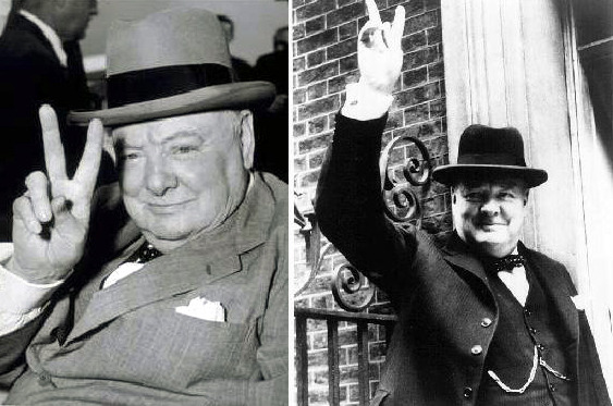 그는 기자들이 자신의 사진을 찍을 때 항상 의식적으로 2차 세계대전에서 연합군이 승리하리라는 뜻으로 Victory란 단어의 맨 앞 자를 손을 만들었던 것이다... 그런데 재밌는 사실은 이 V 표시를 손바닥이 안으로 향하게 보이면 영국에서는 가장 심한 속어가 된다는 것이다.