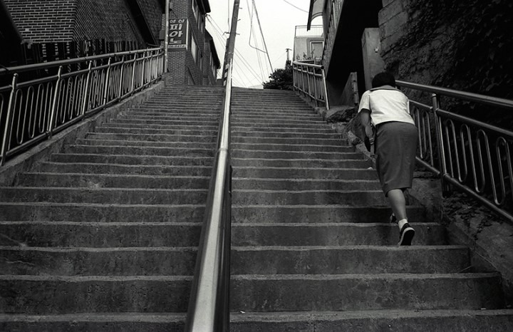 올라가면 끝이 보이지 않고, 내려온다는 생각은 쉽지 않다. 밥 한끼 먹는 것처럼 단순하게 살고픈 마음이지만, 사실은 그렇게 살기가 만만치 않은 세상. 다치고 다쳐도 일단은 올라가 보기를 희망하는 슬픈 영혼들의 도시.
