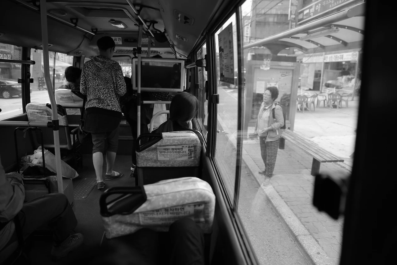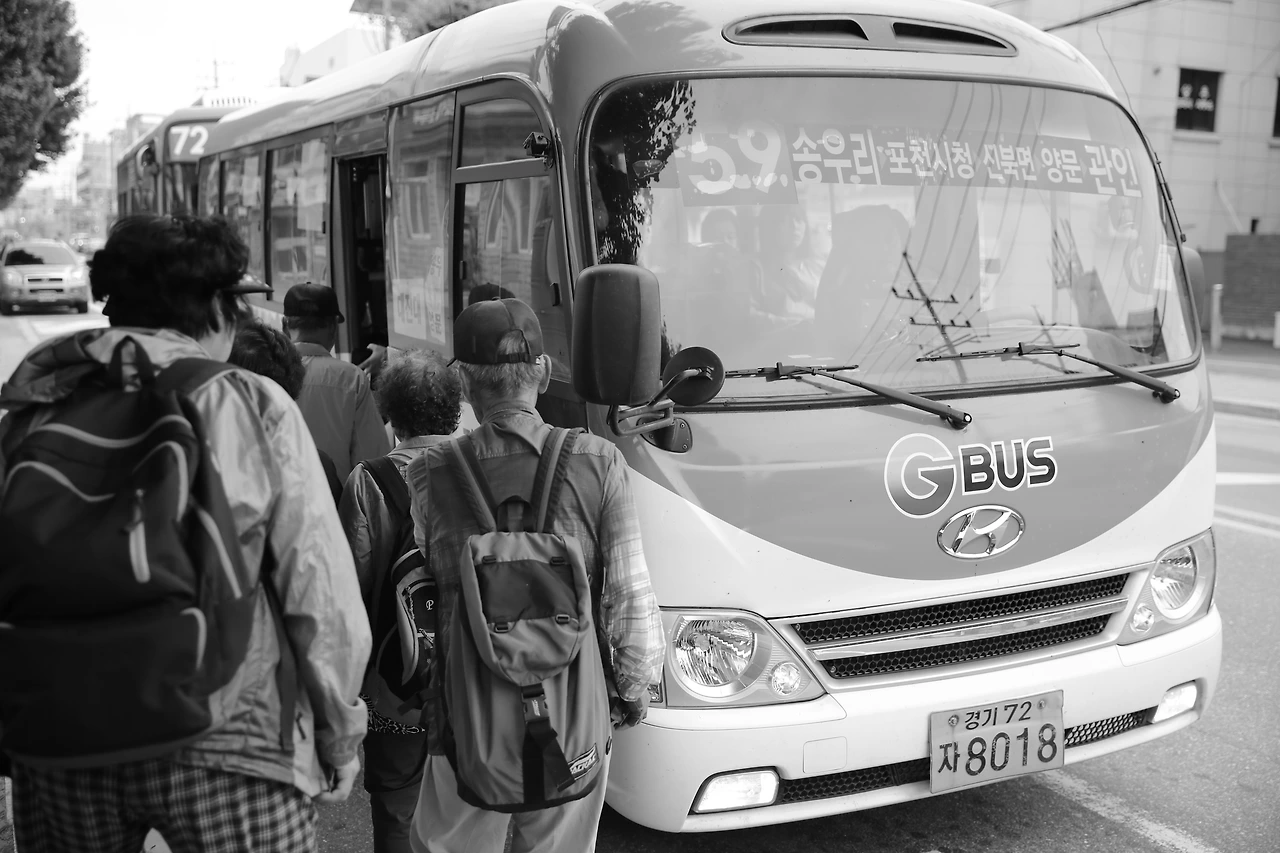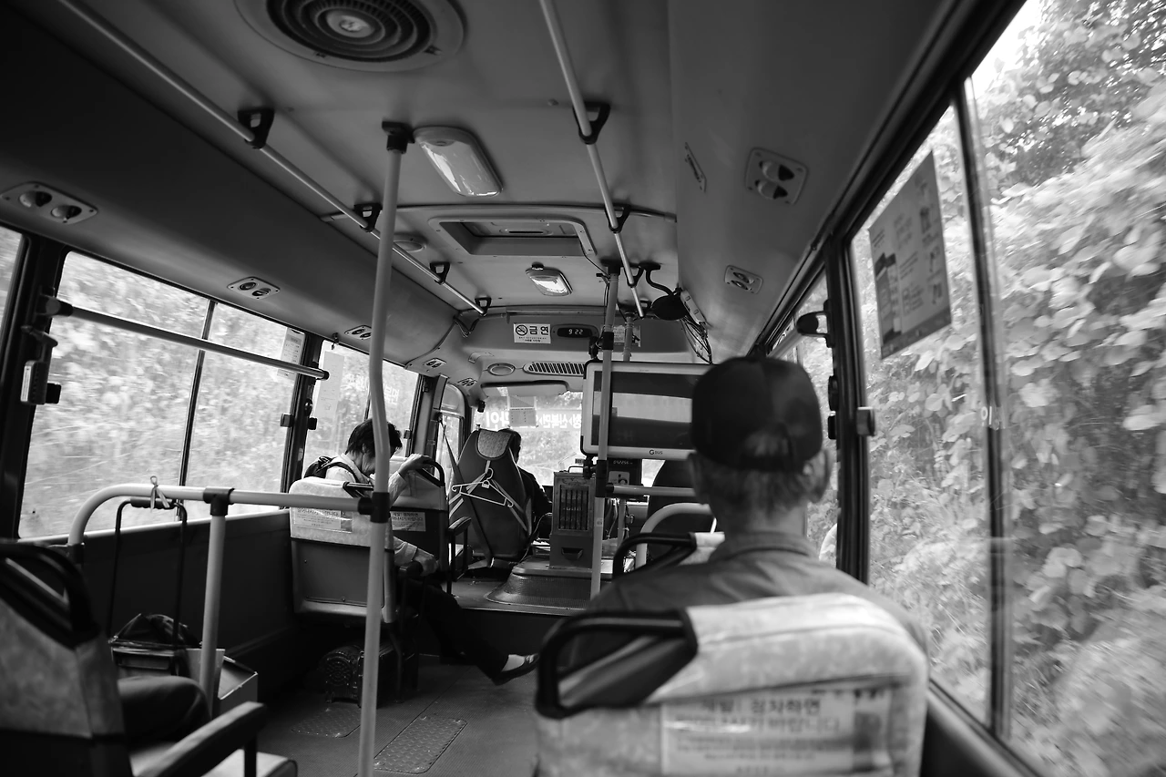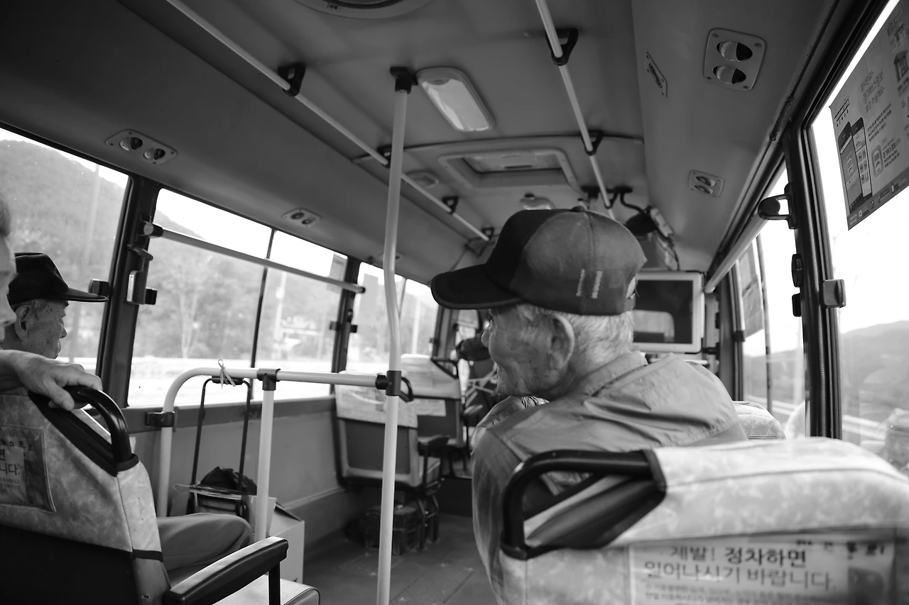 나는 사람들이 잘 보이는 맨 뒷자리에 자리를 잡았는데 공교롭게도 내 옆으로 나이 지긋하신 노부부와 초등학생인 듯 보이는 꼬마가 함께 앉았다. 덜컹거리지만 시골버스답지 않게 광속의 스피드로 질주하는 마을버스에 처음엔 적응이 안 돼서 손잡이를 꽉 붙잡고 있으려니까 옆에 계신 어르신이 슬쩍 한마디 하신다.