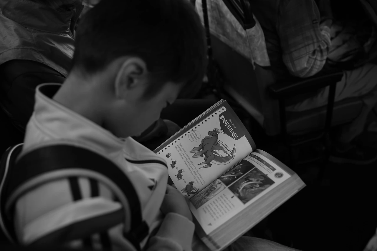 딱 봐도 외지인처럼 보이는 내가 뜬금없이 빠른 마을버스 속도에 적잖이 놀라는 눈치가 보이자 농담을 섞어 차분하게 달래주신다. 그렇군, 이런 느낌 참 오랜만이다. 어르신의 경험에서 우러나는 농담에 같이 웃어주며 이런저런 말을 건넨다. 그 사이 옆자리에 앉은 꼬마가 덜컹거리는 차 안에서도 뭔가를 뚫어져라 보고 있다. 은근히 궁금해 슬쩍 들여다보니 요즘 한창 유행하는 포켓몬스터를 주제로 한 캐릭터 책에서 눈을 떼지 못하고 있다. 그런데 그 광경이 궁금한 건 나뿐만이 아니었다. 꼬마 옆에서 넌지시 책을 바라보던 옆자리 할아버지도 도무지 궁금증을 참지 못하겠다는 듯 아이에게 다가와 묻는다.