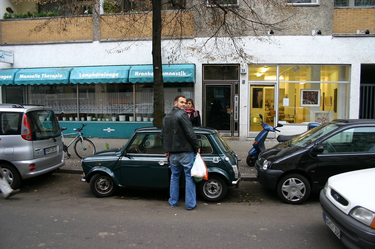 베를린의 조그만 동네 시장을 가로질러 가는 도중에 만난 풍경. 조그마한 로버 미니로 가는 찰나. 과연 저 덩치들이 조그만 차에 다 탈 수 있을까? 덩치에 안 맞게 조그만 차를 선호하는 유럽 사람들. 로버 미니는 앙증맞은 차체에 비해 매우 실용적인 차이다. 간편한 주차로 늘 약속시간을 지켜주니까.