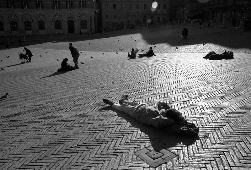 시에나의 골목 안에는 사람들로 넘쳐난다. 그 유명한 시에나 두오모를 지나 골목마다 가득 찬 쇼핑거리를 거닐다가 마지막으로 도착한 곳은 시에나의 명물 캄포 광장. 이곳을 찾은 전 세계의 관광객들은 중세도시의 시민들이 의견을 직접 나누고 고대 시민들의 권리를 주창한 그 광장에 모여 한가로이 뜬금없는 일광욕을 즐기고 있다. 조갯살처럼 오므라진 광장에 드러누워 낮잠을 자는 사람, 광장 주변을 빙 둘러싸고 있는 식당에서 식사를 즐기는 사람. 모두 다 한가로워 죽겠다는 표정들이다.