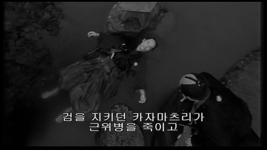 물론 우리의 선택은 나쁘지 않았다. 외려 이 영화 때문에 잠시지만 암울한 현실에서 벗어날 수 있었다. 당시로는 특이하게 흑백영화로 제작되고, 엄청난 사운드 트랙과 스피디한 촬영기법 덕분에 마치 뮤직비디오를 보는 듯한 느낌의 액션극이었는데 줄거리는 말 그대로 황당무계 사무라이 픽션이다.