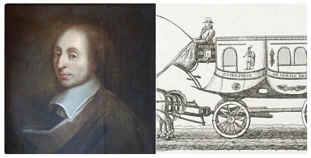 그렇다면 이런 시내버스는 세계에서 누가 최초로 고안해냈을까. 인류 최초로 버스를 제안한 사람은 '인간은 생각하는 갈대'로 유명한 17세기 프랑스의 철학자 파스칼이다. 평소에 배려심이 많았던 그는 아침마다 일터로 나가는 파리의 시민들이 다 함께 타고 다닐 수 있는 값싼 수송수단은 없을까 라는 고민을 하다가, 1661년 여러 대의 마차를 연결해 파리 시내의 정기노선을 순환 운행하고, 요금은 1인당 5수(sous·구 프랑스 화폐)를 받자는 놀라운 제안을 한다.