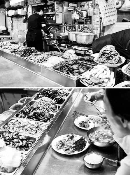 11개의 식당이 뷔페 형식으로 모여있다. 손님이 찬을 고르면 밥과 국은 따로 내준다. 한 끼 7,000원으로 일반적인 시장가 보단 조금 비싸다는 느낌이 들지만 음식을 맛보는 순간 그런 생각은 싹 지워질 정도로 맛나다. 오죽하면 어떤 이가 원하는 반찬만 따로 살 수 있겠냐고 물었을까. 한 집당 대략 20여 가지의 반찬이 있는데 각각 별도로 구매할 수 있다.