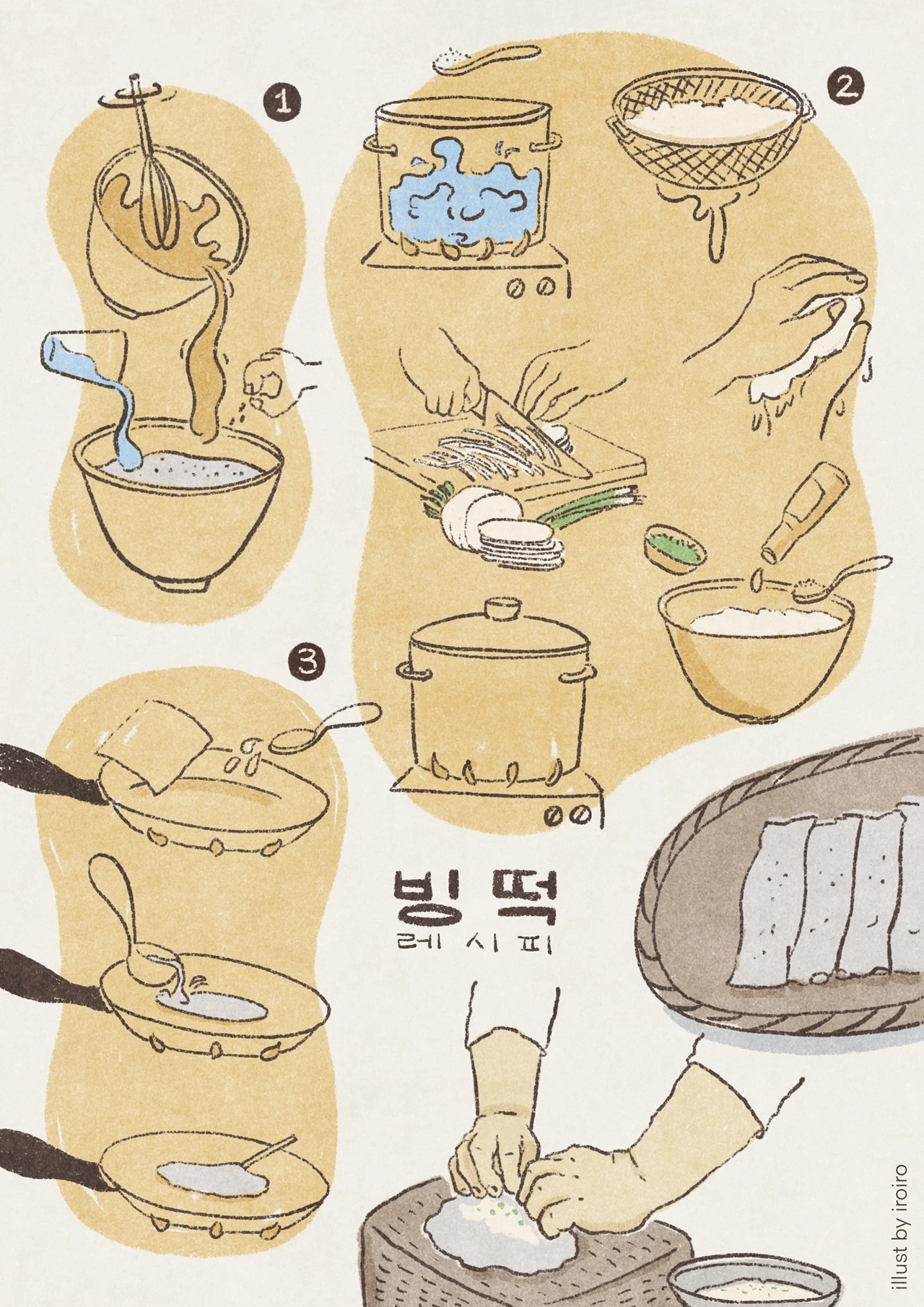 하지만 최근 이 일련의 두 사건을 마주한 후, 빙떡에 대한 나의 생각이 조금 달라졌다. 왜 빙떡 대신 영빈 혹은 빈이라는 이름으로 이 떡을 불렀을까? 그리고 어쩌면 빙떡이라는 이름이 떡 병(餠)이 아닌 빈이라는 단어에서 나온 떡은 아니었을까?