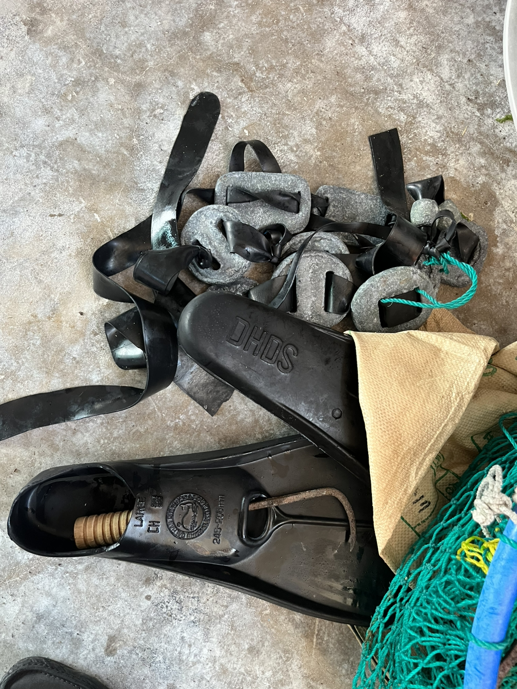 “돈이 막 귀행 바다에 들어감서? 이제껏 내가 배운게 그것이라 가는 거. 큰아들은 지금도 못하게 말리지만 67년 할 줄 아는 건 물질밖에 어신거라. 마흔살 한창일 땐 막 잘해나신디 양어장 17년 살고 다시 바당 와 보난 이제 그 아이들(현직해녀)을 못 따라가커라. 요즘 여(물속에 잠겨 보이지 않는 바위) 고망(구멍)엔 여물이 없어. 큰 돌을 들어 그 바닥에 물건이 좀 있어. 난 이제 무거워서 큰 돌은 못들고 작은 돌 정도만 들어. 그 정도면 소라는 잡지. 깊은데까지 숨비니까 소라는 잡아지는데 성게는 돌을 들어야 보이는 거라. 큰 돌 아래 있는 것이 큰 성게라. 겅행 난 성게는 잘 못해. 옛날 옷 말고 고무옷입기 시작할 때 빨간 성게라고 있어. 그땐 고멍에 있는 빨간성게로 많이 했어. 지금은 성게가 다 줄어서 (없어).”