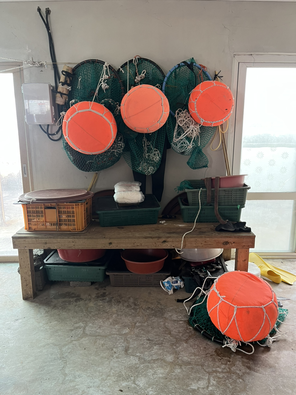 어르신은 우도가 보이는 푸른 바다와 마주하고 있는 신양리 불턱으로 나를 안내했다. 이 불턱은 등록된 사십여명의 신양리 해녀 중 11명이 공동으로 사용하는 곳이다. 이 불턱을 사용하는 해녀들끼리는 전화로 연락하며 안부를 묻지 않아도 된다. 아침 7시반 즈음 되면 불턱으로 삼삼오오 모여들면서 서로의 안부와 인사를 나눈다. 집에서 싸 온 음식을 함께 먹고 이야기도 나누며 놀다가 작업할 시간이 되면 바다에 들어가 물건을 해 온다. 작업이 끝나면 따뜻한 물에 씻을 수도 있고 가스레인지가 있어 음식도 따뜻하게 해서 먹을 수 있는 이 신식 불턱은 옛날 돌로 쌓은 불턱에 비하면 천국이나 다름없다 하셨다.