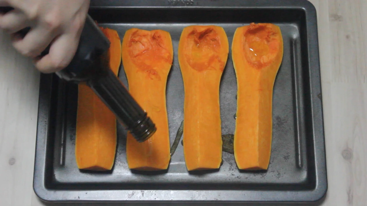 땅콩호박은 구워먹으면 더 맛있다고하네요. 그러니 그 맛을 더 즐기고, 속살을 연하게 만들기 위해(이후 으깰 것이기 때문에) 오븐에 구워주겠습니다.