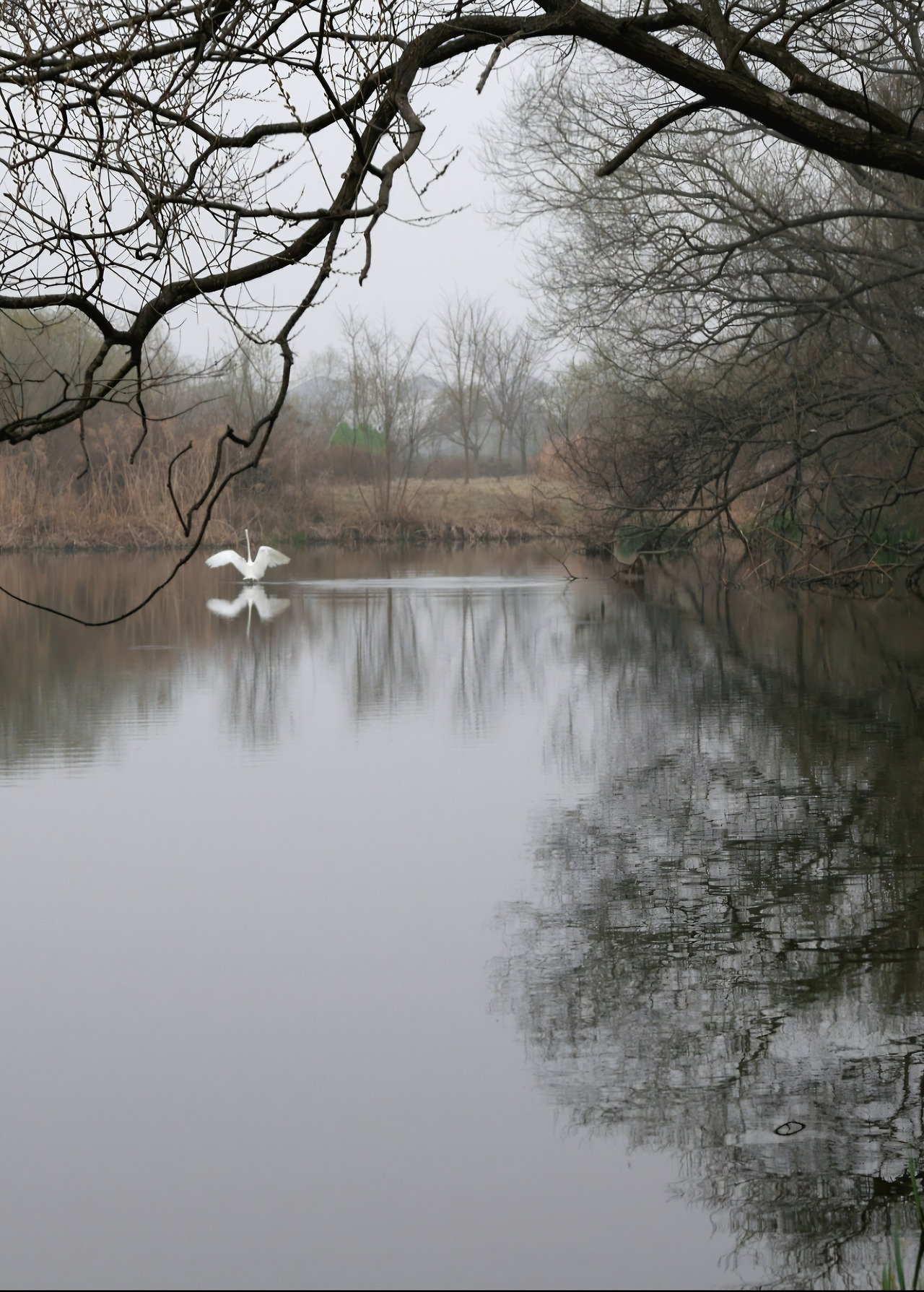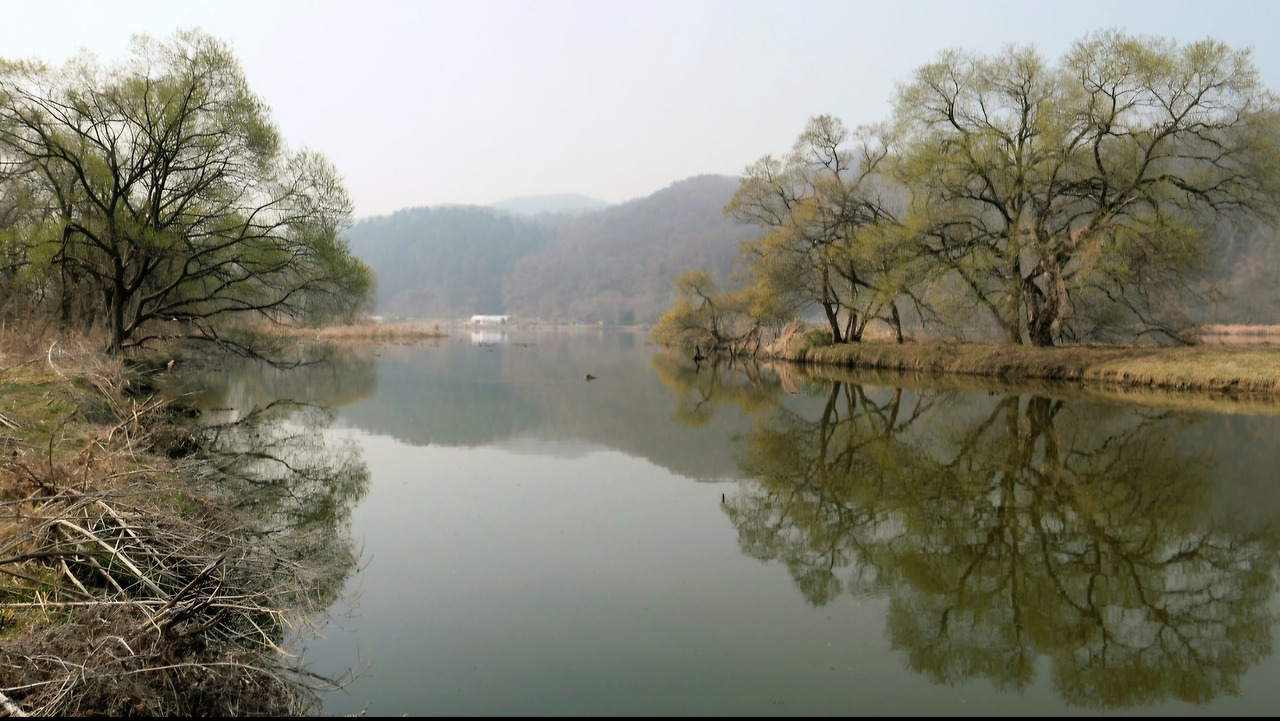 이제는 철새가 거의 떠나고 오리, 물닭, 백로와 간간이 가마우지가 먹이를 찾고 있었다. 넓은 생태공원은 습지를 거닐 수 있는 데크가 있고 주변으로 버들 강아지, 매화, 목련이 피어있는 산책로가 이어진다. 전망대에서는 물고기를 잡고 있는 새들의 모습을 관찰할 수 있다. 물가에서 푸드덕거리며 요란한 소리가 났다. 물가 가장자리 수초에 커다란 잉어들이 산란을 하려고 자리잡는 몸부림인 것이다. 철새가 떠난 자리에 물살을 가르는 힘찬 태동이 생동감있게 다가왔다. 둑으로 올라가면 양쪽으로 늘어선 벚나무의 가지마다 연분홍 꽃봉오리가 부풀고 있었다. 며칠 내로 필 것 같았다.