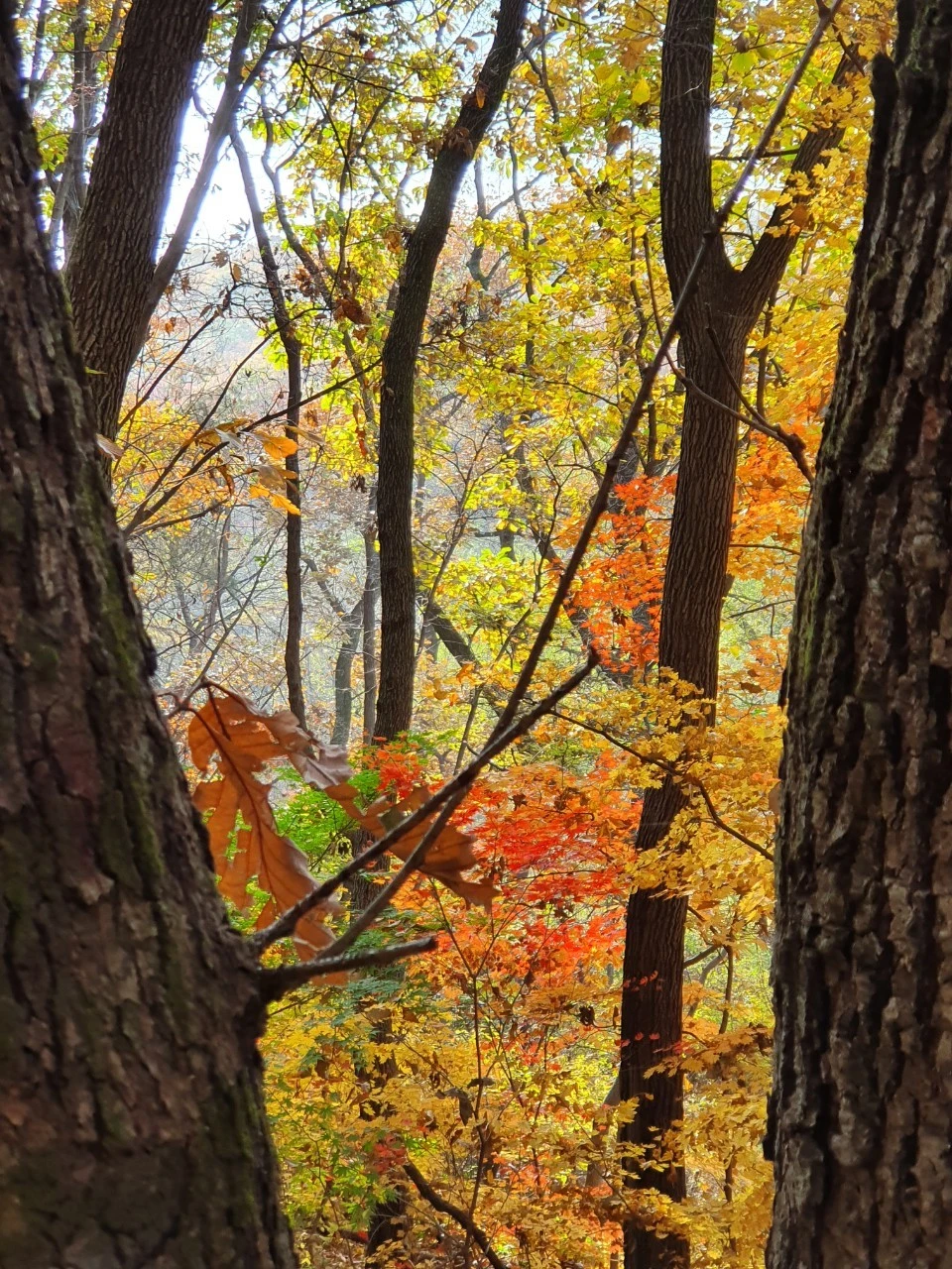 두 번째는 집에서 10m만 나가면 둘레길이다 봄에 그 길을 걸으면 연두색으로 피어나는 새순을 볼 수 있고, 홀로 피어난 진달래의 분홍색 꽃을 보며 발걸음을 멈추게 된다. 여름에는 활엽수들이 하늘을 덮는 푸르름 때문에 바람 소리를 들으며 벤치에 앉아 텀블러에 담긴 냉커피 한 잔을 마실 수 있다. 가을은 활엽수들이기에 오색의 단풍은 아니라 할지라도 수북이 쌓인 낙엽을 밟으며 인생의 무상함을 한 줄의 글로 남길 수 있다. 겨울은 추워 안 나가기에 모르겠는데 동계에는 방콕이 최고다. ㅎㅎ