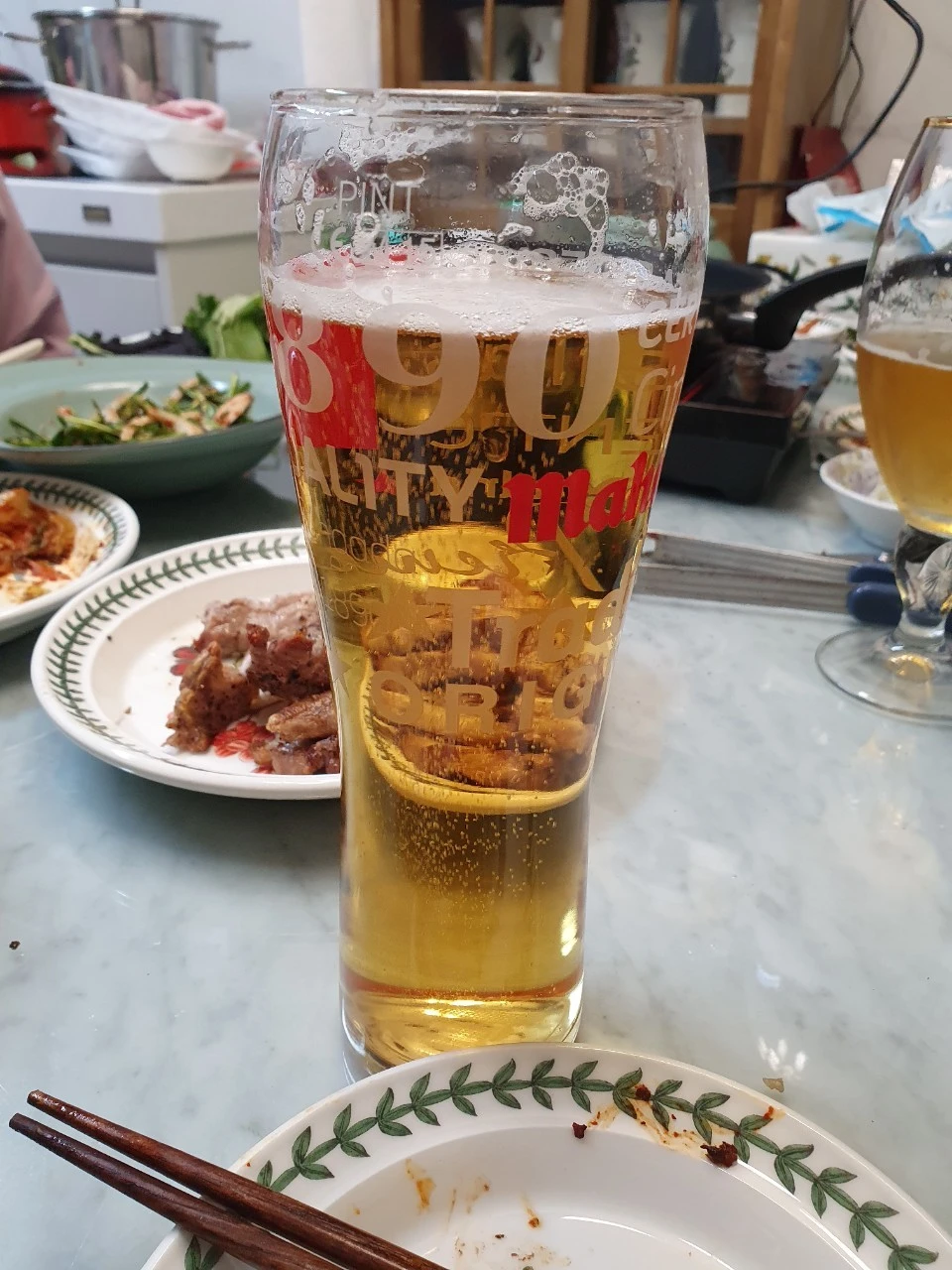 저녁 시간 둘이 앉아 맥주를 마시며 이야기를 나눴다.