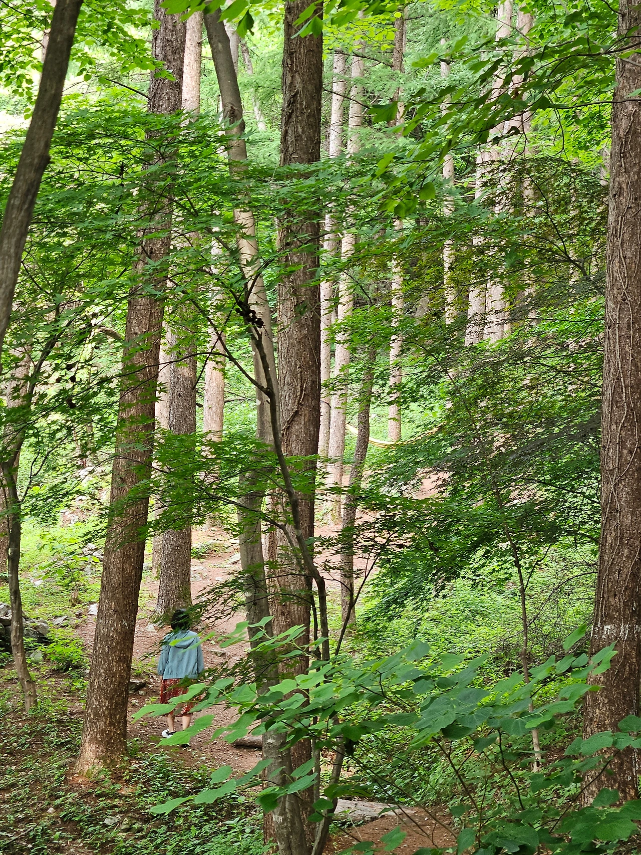 피톤 치드를 마음껏 마실 수 있는 숲 속에 앉아있고,