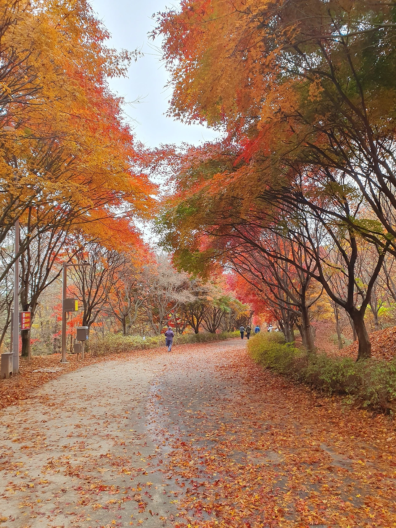 가을을 말할 때 오색단풍이라는 말로 아름다움을 이야기한다. 가을의 풍경은 생각의 조립이 아니라 눈으로 다가오는 느낌이기에 ”좋다!“란 감탄사 한 단어면 충분하다. 내 옆에 누군가 함께 걸을 수 있는 벗이 있다면 이 길의 주인공 될 수 있다. 그 친구와 함께 20대 시절 연애편지에 자주 인용했던 구르몽의 시를 읊조린다.