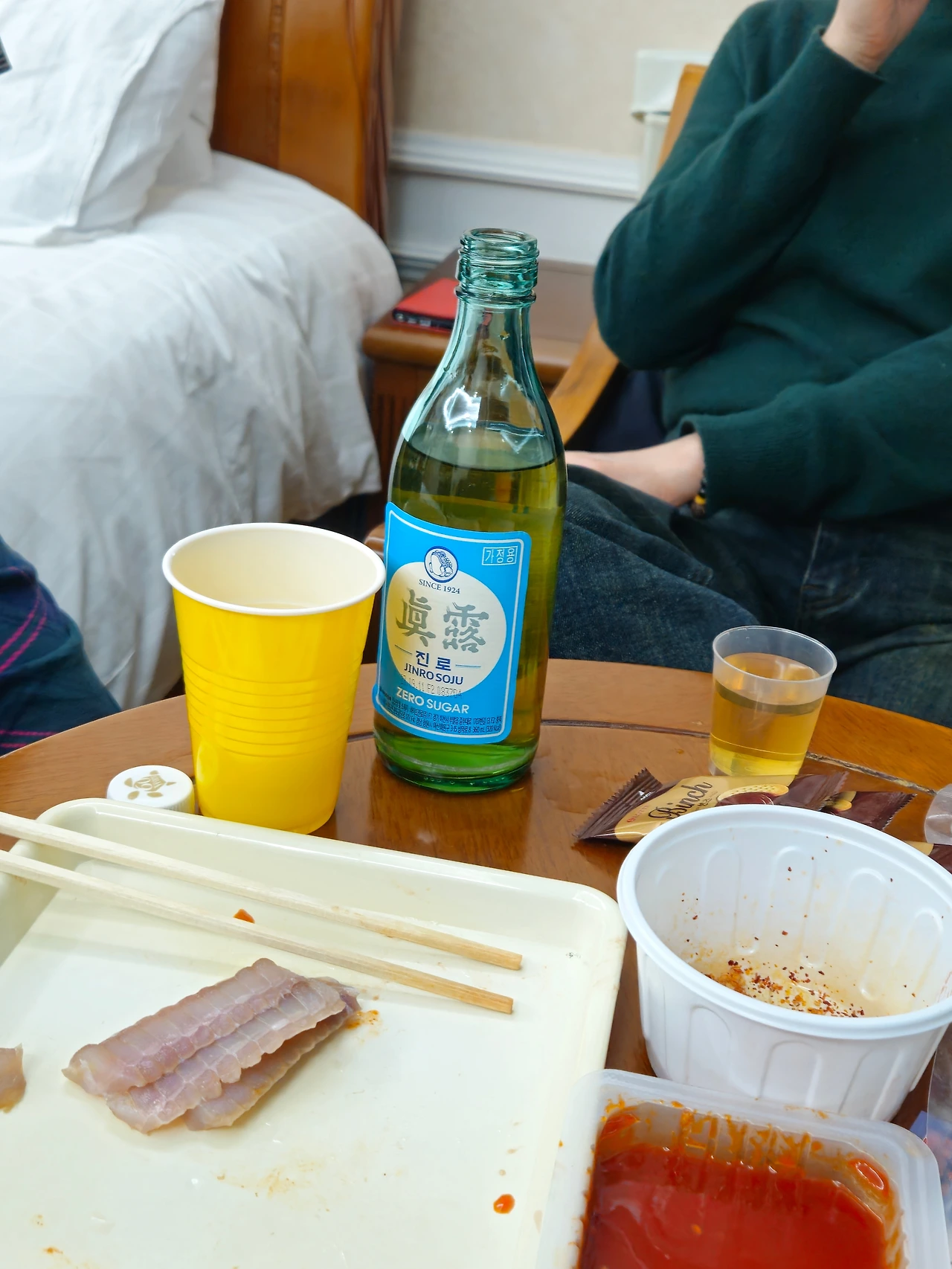 둘이 잔 부딪치며 웃음과 함께 마시는 즐거움을 누린다. 모두 잠자는 새벽 2시까지 G, H과 함께 음주의 즐거움을 누리며 우리가 살아온 삶에 관해 이야기를 나눴는데 유익한 시간이다.