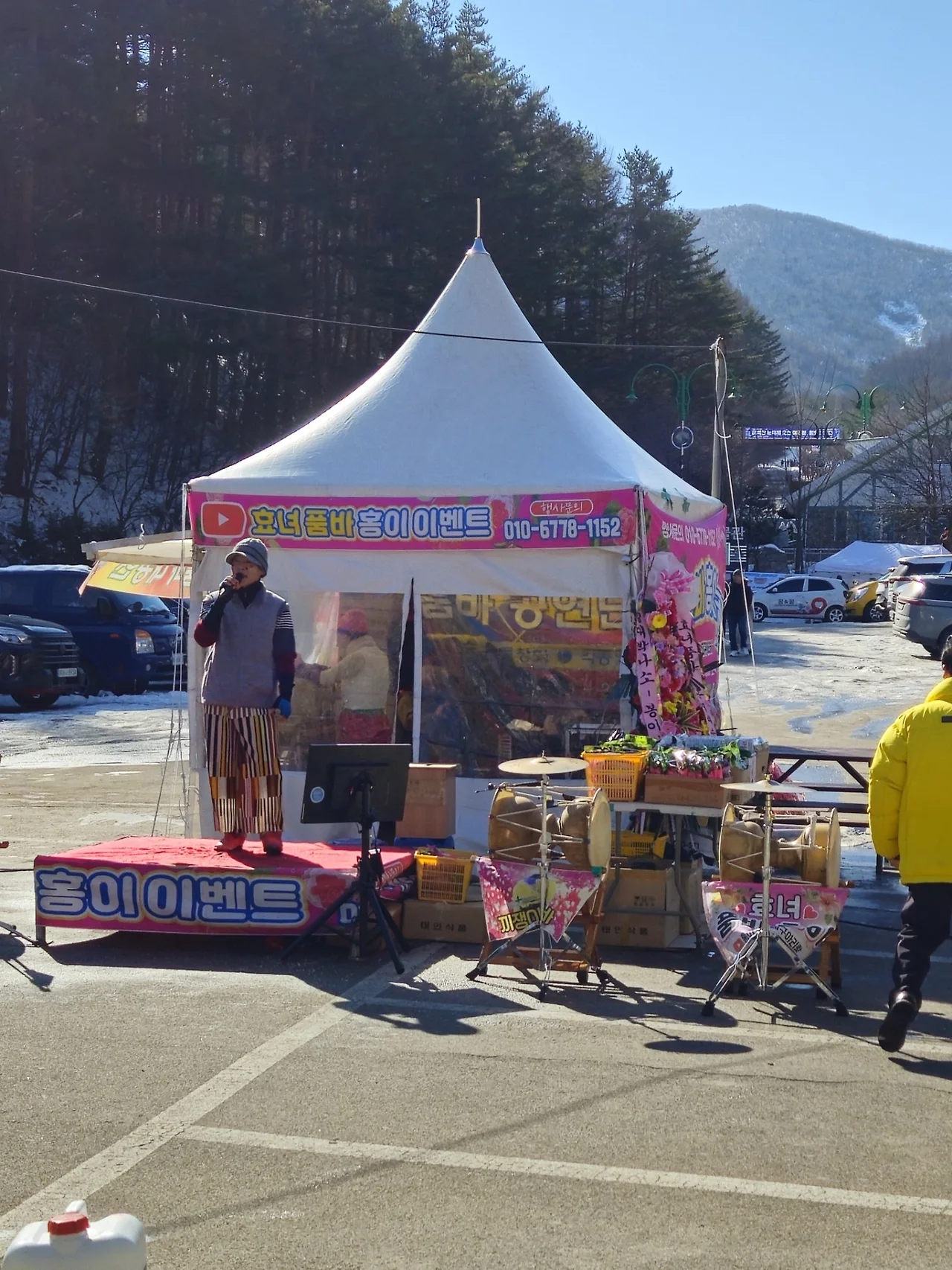 ‘따로 또 같이’ 60살이 넘은 부부 여행에 딱 어울리는 말이다. 상대를 의식하지 않고 내가 좋아하는 짓을 한다고 해도 아내의 마음이 상할 일이 없다. 잠을 자는 아내를 보며 남편은 ”피곤하구나“라는 말로 위로하면 그만이다. 이렇게 열차는 서울역을 떠나 5시간 정도 걸려 태백산 눈축제에 도착했다. 이때 주차장에서 시끄러운 고음이 들려온다. 대한민국 어디에 가든 구경할 수 있는 품바나 각설이 타령을 부르며 관광객을 부르는 밴드다. 순간 저 시끄러움에 또 마음이 비틀어진다.