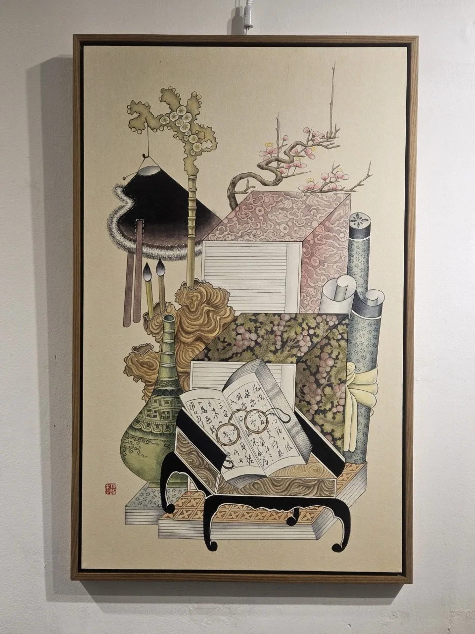 북촌, 종묘, 창덕궁, 익선동, 운현궁 등 가볼 만한 곳이 많기에 밥을 먹는 것보다 소중한 시간이다. 5월의 마지막 날이지만 햇살은 이미 초여름을 넘어설 정도로 따갑다. 이런 날은 운현궁 툇마루에 앉아 냉커피 한 잔을 마시는 것이 여유로움이다. 입구로 들어서면 오른쪽에 자그마한 전시실이 있는데 오늘은 ‘내 안의 뜰’이라는 제목으로 민화 전시회가 열리고 있다. 열댓 점의 그림이 전시되고 있는데 책가도(冊架圖)가 눈에 들어온다. 반가웠고 한 장쯤 소장하고 싶은 욕심이 생긴다. 책 한 줄 읽고 그림 한 점 쳐다보는 것이 독서의 즐거움이 아닐까?