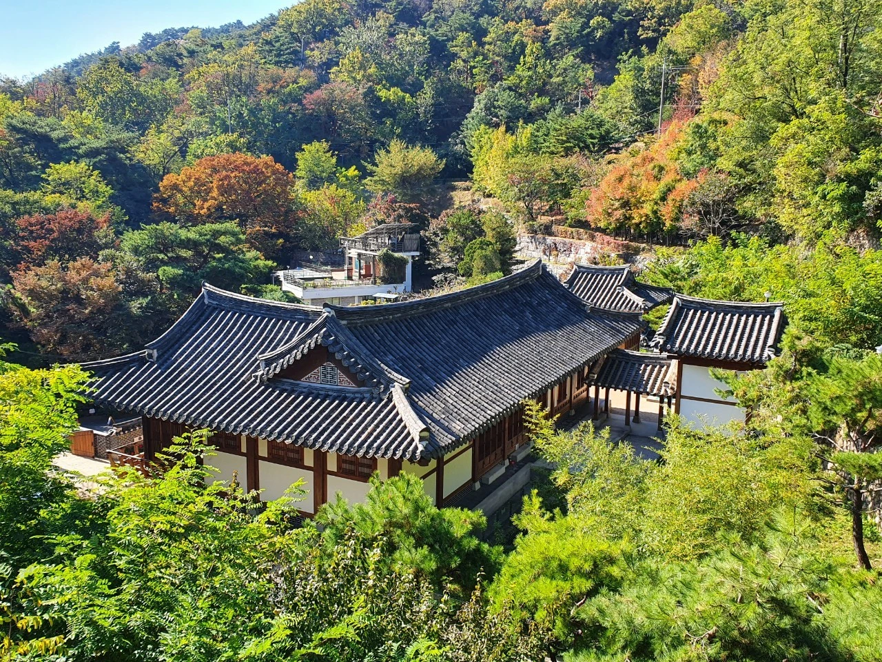 라며 자신을 안심시켰는데 한참 꼭대기에 그림 같은 한옥이 보인다. “멋지네!!” 주변 환경이 책 읽기에 정말 좋다. 미니 폭포, 장미를 비롯한 몇 가지의 꽃들, 단풍나무, 파란 하늘, 선선한 바람 등 최적의 환경을 갖추고 있었으나 너무 조용하다. 웬 아저씨 혼자 창살 보수하는 모습만 보인다. 급 불안 ㅠㅠ 아니나 다를까?