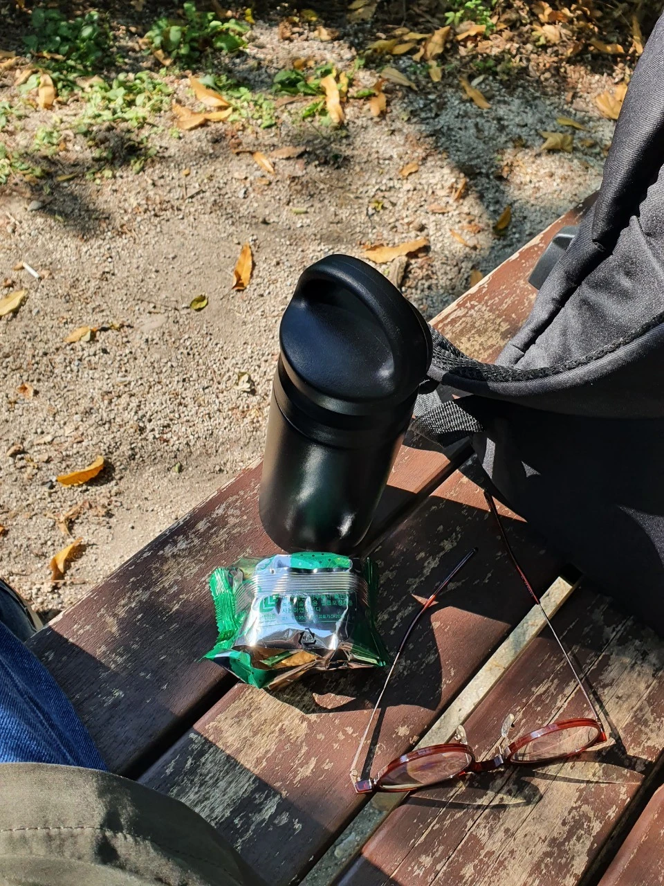 떨어지지 않는 발걸음을 뒤로하며 인왕산 둘레길로 들어서서 조용한 벤치에 앉아 텀블러를 꺼내 커피를 마시기 시작했다. 눈앞에 아카시아 나뭇가지가 흔들리고 있는데 아직 초록색이다. 바람이 불면 부는 쪽으로, 잠잠하면 조용히 햇살을 즐기고 있는 모습이 “여유로움은 이런 거야”라며 뽐내는 것 같다. 동행인이 있었으면 “커피 한 잔을 나누며 우리 모습 같아”라며 수작도 부렸을 테지만 혼자니까 미소만 짓는다. 크래커를 입에 넣을 때 떠오르는 생각