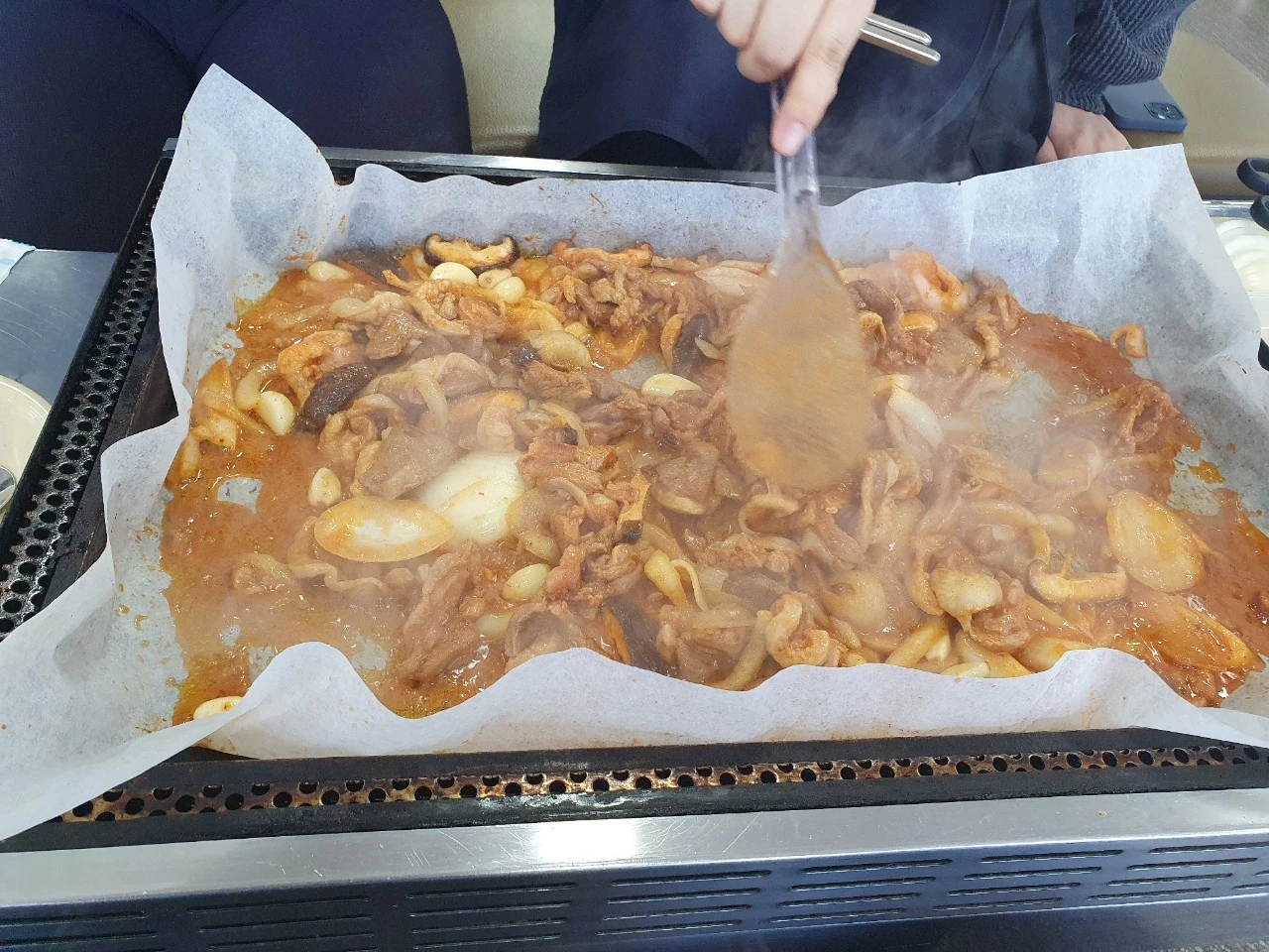 퇴근 후 간단히 샤워하고 아들 차에 올랐습니다. 기아 스포티지를 사들인 지 1년 4개월 정도 지났는데 오늘 점심 먹으러 가면 1만 KM를 탄다는군요. 처음에는 조수석에 앉는 것이 불안했는데 이제는 믿고 몸을 맡길 정도로 편안해졌습니다. 가는 곳은 양촌에 있는 오리 주물럭 고깃집인데 이건 음식점이 아니라 광화문 광장처럼 넓었습니다. 더 놀라운 사실은 그 넓은 공간에 사람들이 바글바글하는군요.