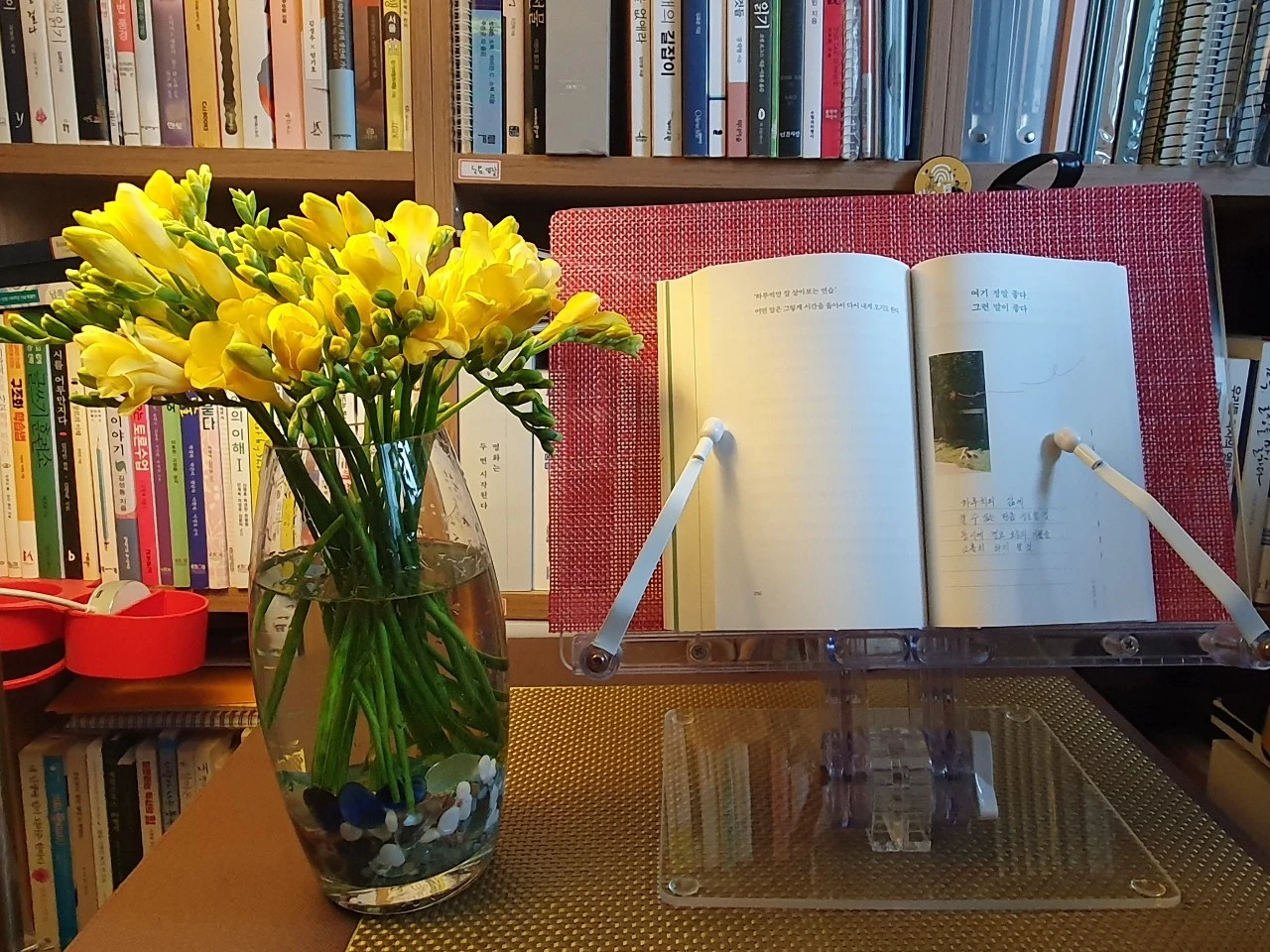 삶은 누군가의 응원이 있을 때 힘이 나고 옹달샘처럼 맑은 기운으로 흘러넘칠 수 있다. 후리지아 꽃향기를 맡으니까 가라앉았던 마음이 서서히 부상하기 시작한다. 마음이 흐트러지는 날 자신에게 질문해 본다.