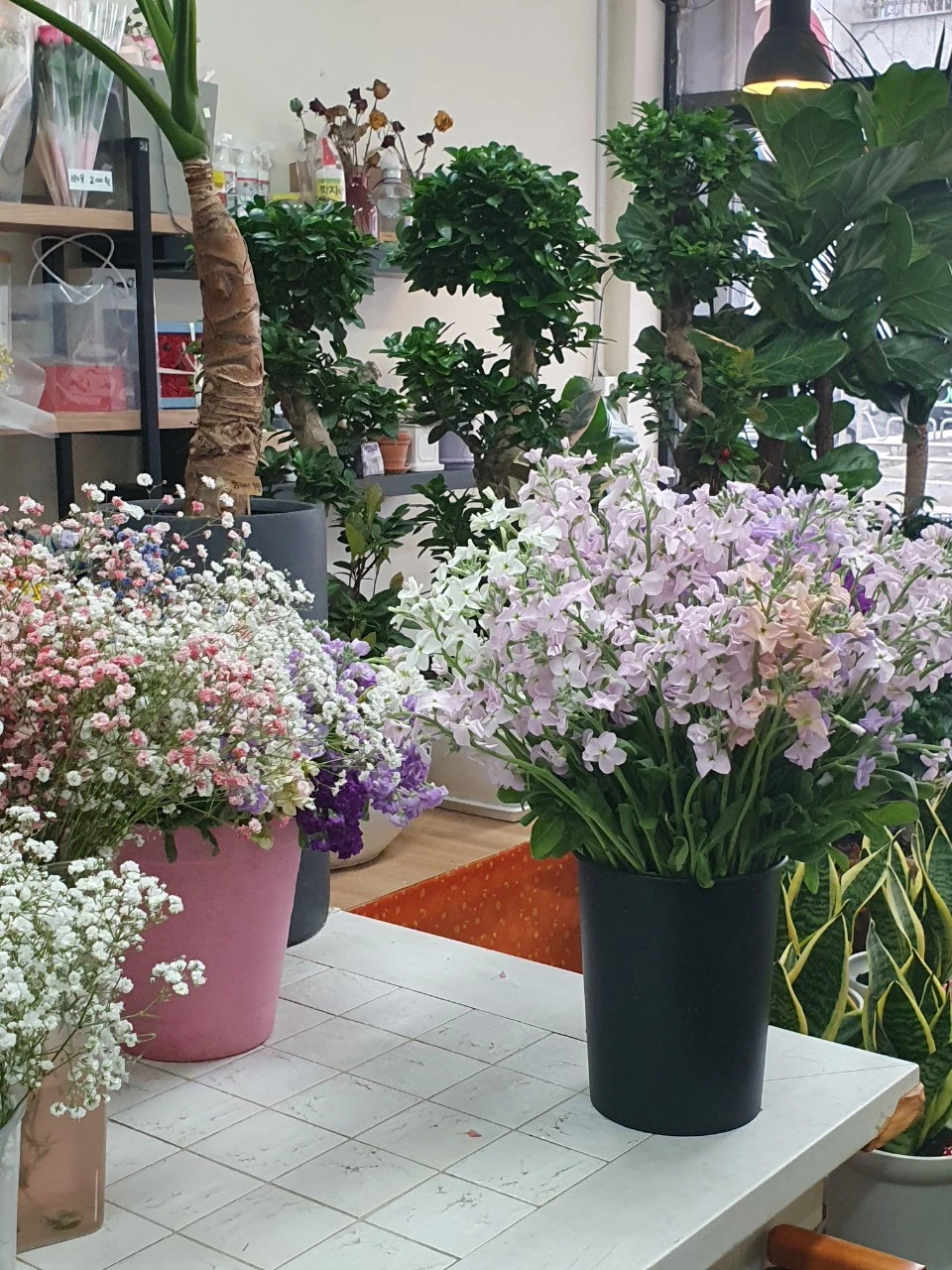 난 이 시간 네 번째 행복을 누리기 위해 꽃집에 온 것이다. 30대 후반쯤으로 보이는 주인 언니는 예전의 유명한 노래였던 “꽃집의 아가씨는 예뻐요”란 제목처럼 예쁜 분이다.