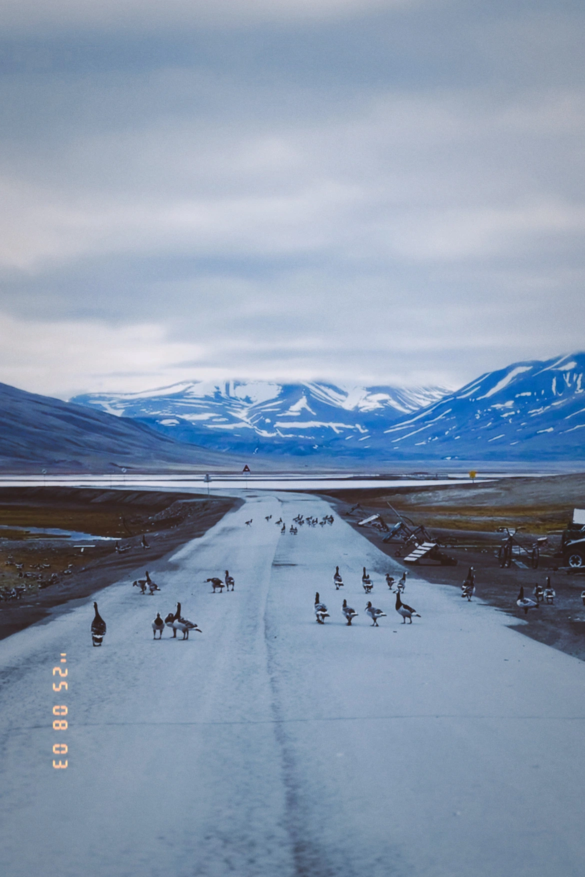 숙소에서 1.5km 떨어진 곳에 북극곰 표지판이 있었다. 약 20분 정도 걸리는 거리를 천천히 걸어가기로 했다. 숙소에서 나와 지름길로 가려는데, 저 멀리 폴짝폴짝 북극여우가 뛰어갔다. 그런데 새들이 북극여우의 머리 위를 맴돌며 쫓아가는 모습이 보였다. 북극여우가 새들을 괴롭힌 걸까? 아니면 새들이 북극여우를 괴롭히는 걸까? 이곳에서 처음 마주한 동물들의 모습이 서로 쫓고 쫓기는 상황이었다는 것이 제법 씁쓸하게 다가왔다.