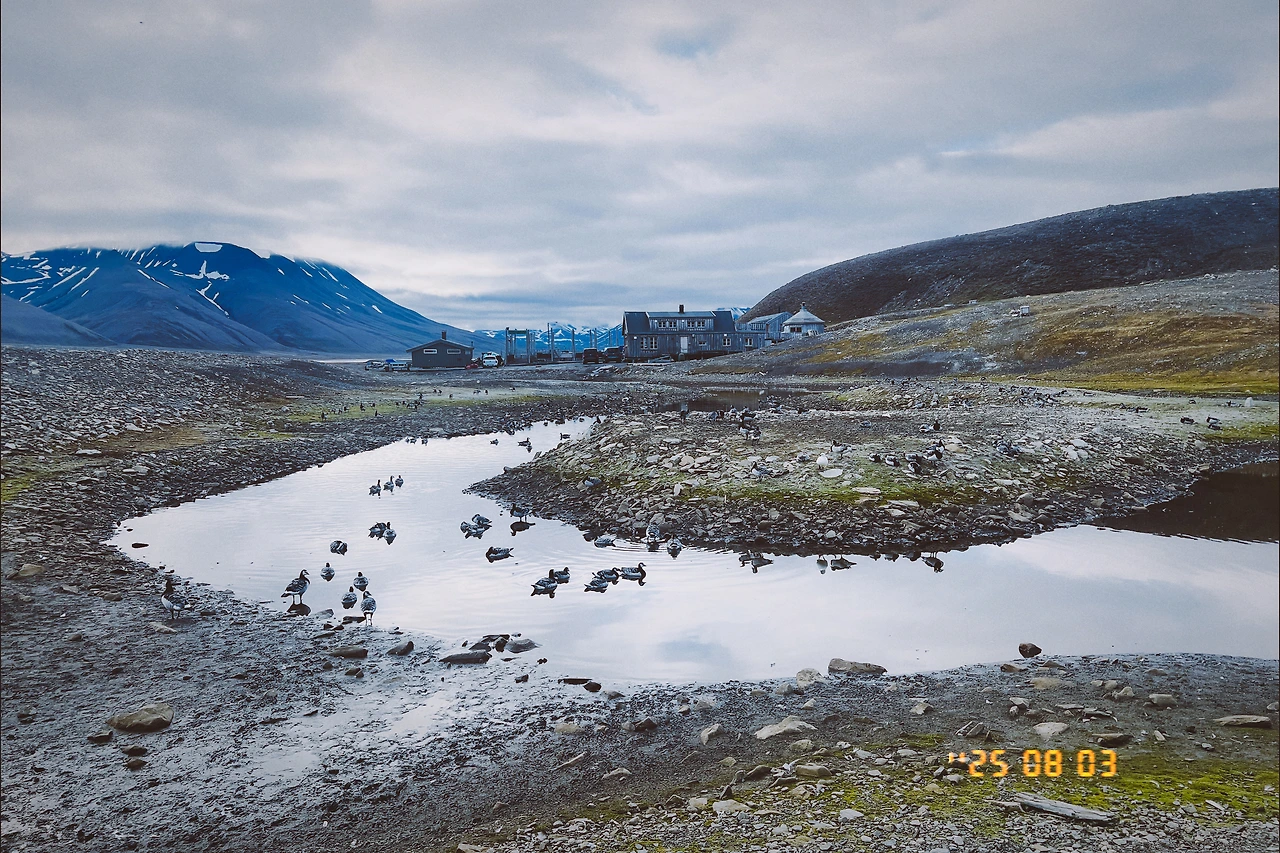 그런데 거위가 날아다니는 모습을 좀처럼 볼 수가 없었다. 이상하긴 했지만 답을 찾는 것을 미뤄두었는데, 니알슨 과학기지촌에서 만난 북극 생태학 박사님과의 인터뷰를 통해 그 이유가 탈피 때문이라는 것을 알게 되었다. 바나클거위들은 번식 시기와 탈피 시기가 연달아 온다. 번식 후에 새로운 날개를 돋우기까지 너무도 많은 에너지가 들기도 하고, 오래된 깃털이 한 번에 탈락되기 때문이기도 하다. 새로운 깃털이 자라기까지 약 한 달간의 시간이 필요해서 일시적으로 비행불능 상태가 되는 것이다. 그래서 안전한 서식지로 풍족한 먹이가 있는 초지이면서 위협이 있을 땐 물로 피할 수 있도록 담수연못이 있는 환경을 찾는다고 한다.