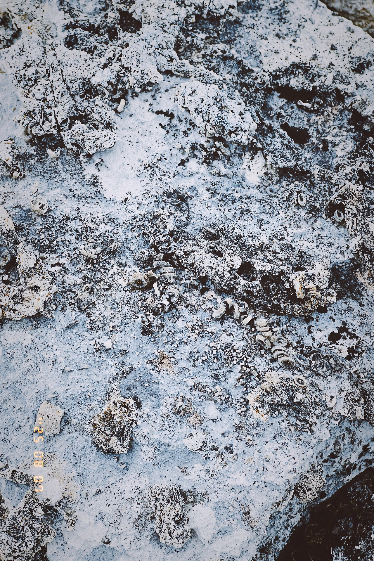 돌무더기들 사이에서 신생대에 살았었다며 존재감을 드러내는 식물 화석을 발견했다. 그리고는 열 발자국 정도 갔을 때 거대한 계단 하나가 있는 것처럼 높은 턱이 보였다. 역단층으로 신생대 지층 위로 올라온 고생대 지층이었다. 그곳에는 산호 화석이 돌에 빼곡히 붙어있었다. 오래전 이곳이 바다였음을 알리는 증거였다. 동그랗고 중앙이 비어있는 듯한 고리형태를 하고 있는 것들이 아주 딱딱하게 달라붙어 있었는데 이것이 산호의 단면이라고 했다. 파이프처럼 생긴 것은 산호의 줄기 부분이라고. 산호화석을 가까이에서 보면서 바닷속 모습을 상상해 보았다. 산호군락이 많았다면 아마 따뜻하고 얕은 바다였을 것이다.