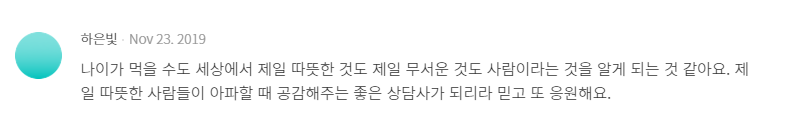 이외에도 마음에 와 닿는 여러 댓글들이 있다. 이 글에서는 소중한 댓글들을 모두 담지는 못했지만, 느껴질 거라 생각한다. 내가 살아낼 수 있었던 이유, 땀으로 젖은 몸을 말리며 상처를 발견하고, 이해하고, 화해하고, 용서하고, 치유하는 데에는 내 글을 읽어준 사람들이 있었기에 가능했다는 것을. 이들이 지켜봐 준 덕분에, 기어코 남긴 한마디 말 덕분에 나는 진실된 모습으로 오늘을 살아가고 있다.