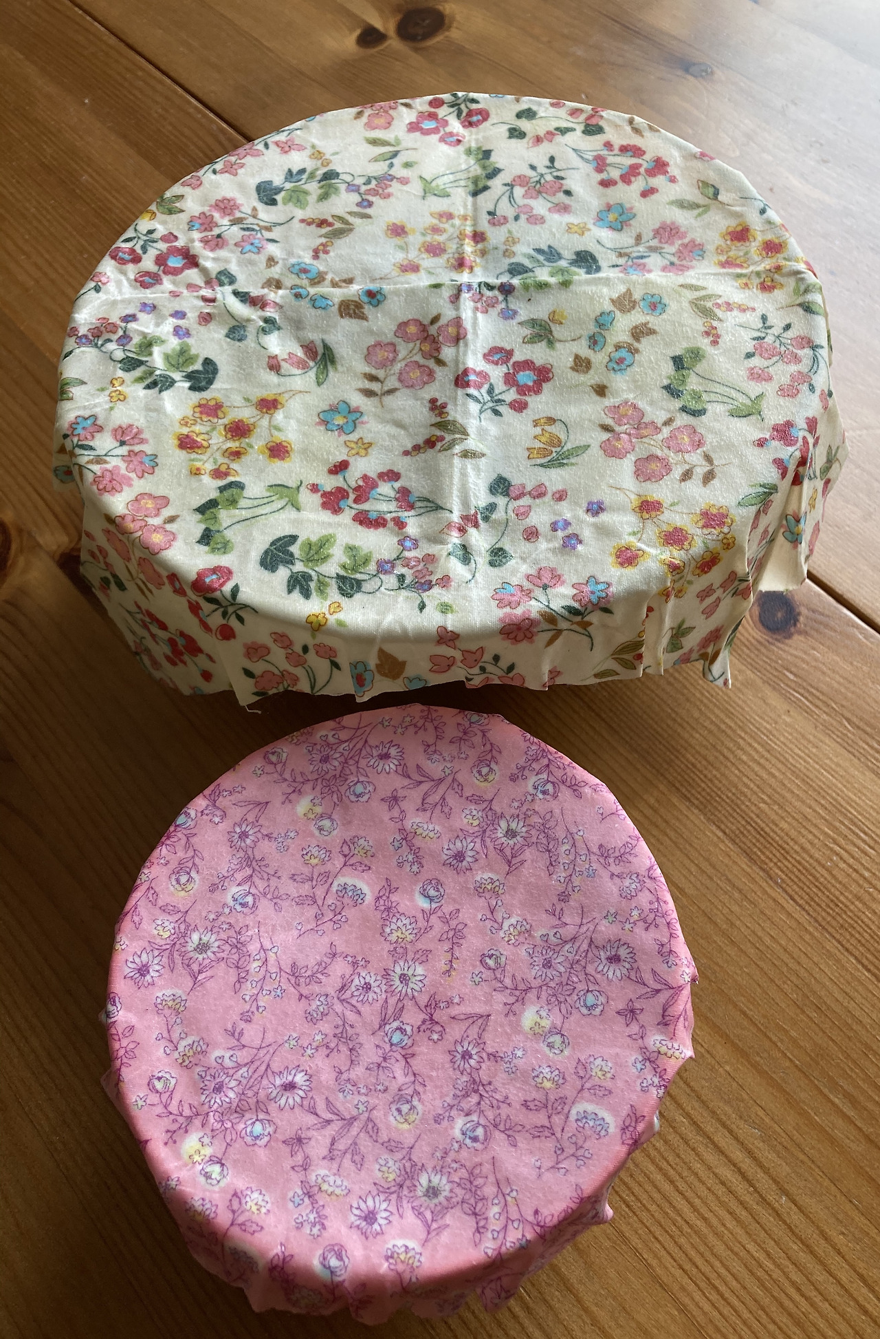 이것은 비즈왁스 랩이라 부르는 재활용이 가능한 푸드 랩이었다. 호주에서는 이미 많이 알려진 거 같았다. 비즈왁스는 밀랍이라고도 부르고, 벌집에서 추출된 동물성 고체의 왁스이다. 천연성분으로 항균작용을 하며, 비누나 화장품에서도 많이 쓰이고 있었다. 나도 이 왁스 랩을 만들어 쓰면 집에서 비닐랩을 쓸 기회를 많이 줄일 수 있겠다는 생각이 들었다. 이베이에서 검색 끝에 동글동글 잘라진 비즈왁스를 구입했다. 그리 비싸지도 않았다. 그리고 집에서 굴러다니는 짜투라기 천을 찾았다. 예전에 퀼트를 할 때 모아두었던 예쁜 천들이 나왔다. 물론 천은 100% 면이었다. 적당한 천이 없으면, 남편의 와이셔츠를 잘라서 한다는 사람도 있고, 뭐 아무 면으로 된 천을 쓰면 된다.