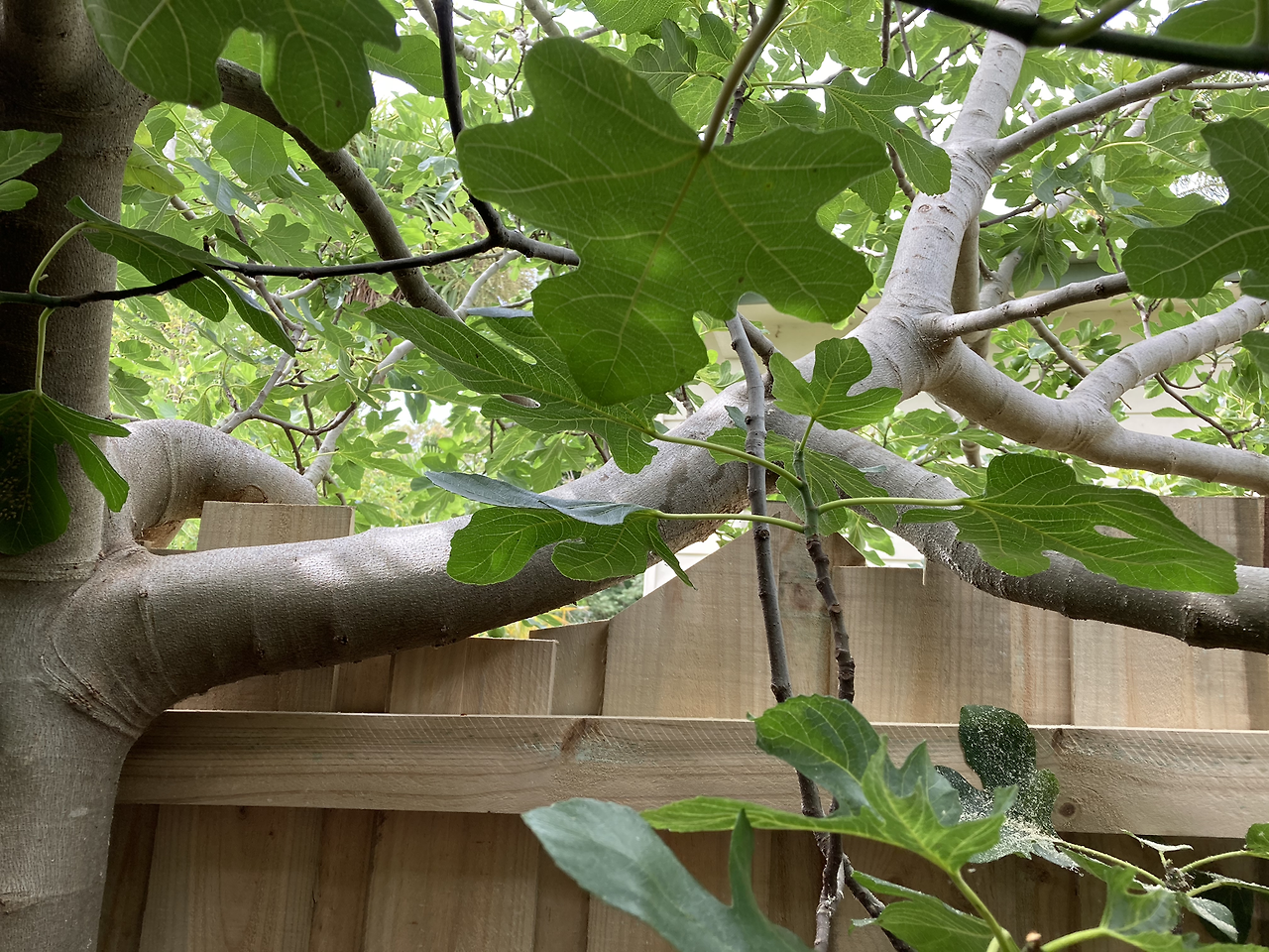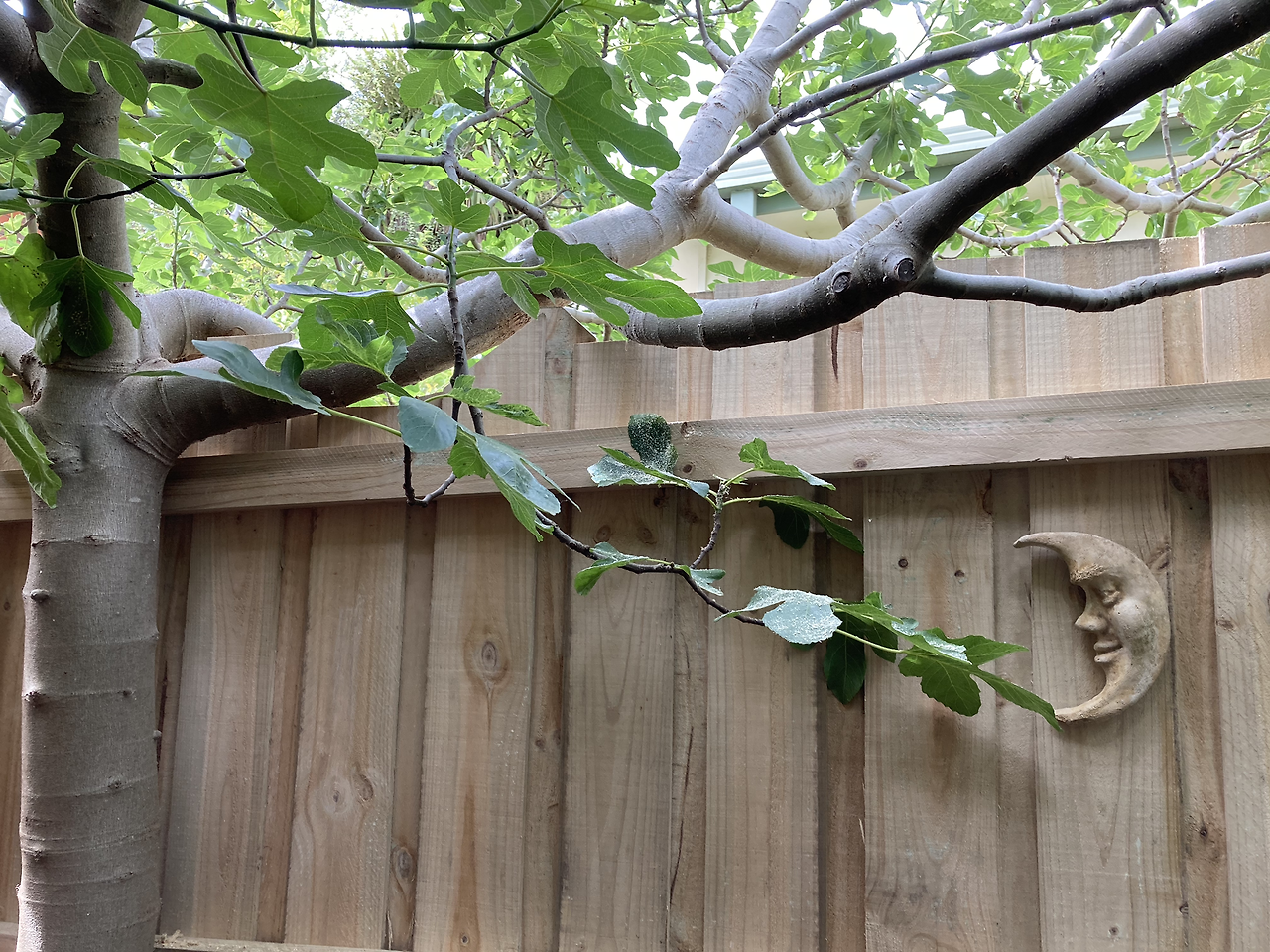 새 담장 위로 잘라져 나갈 뻔한 가지를 조심스레 내려놓는다.