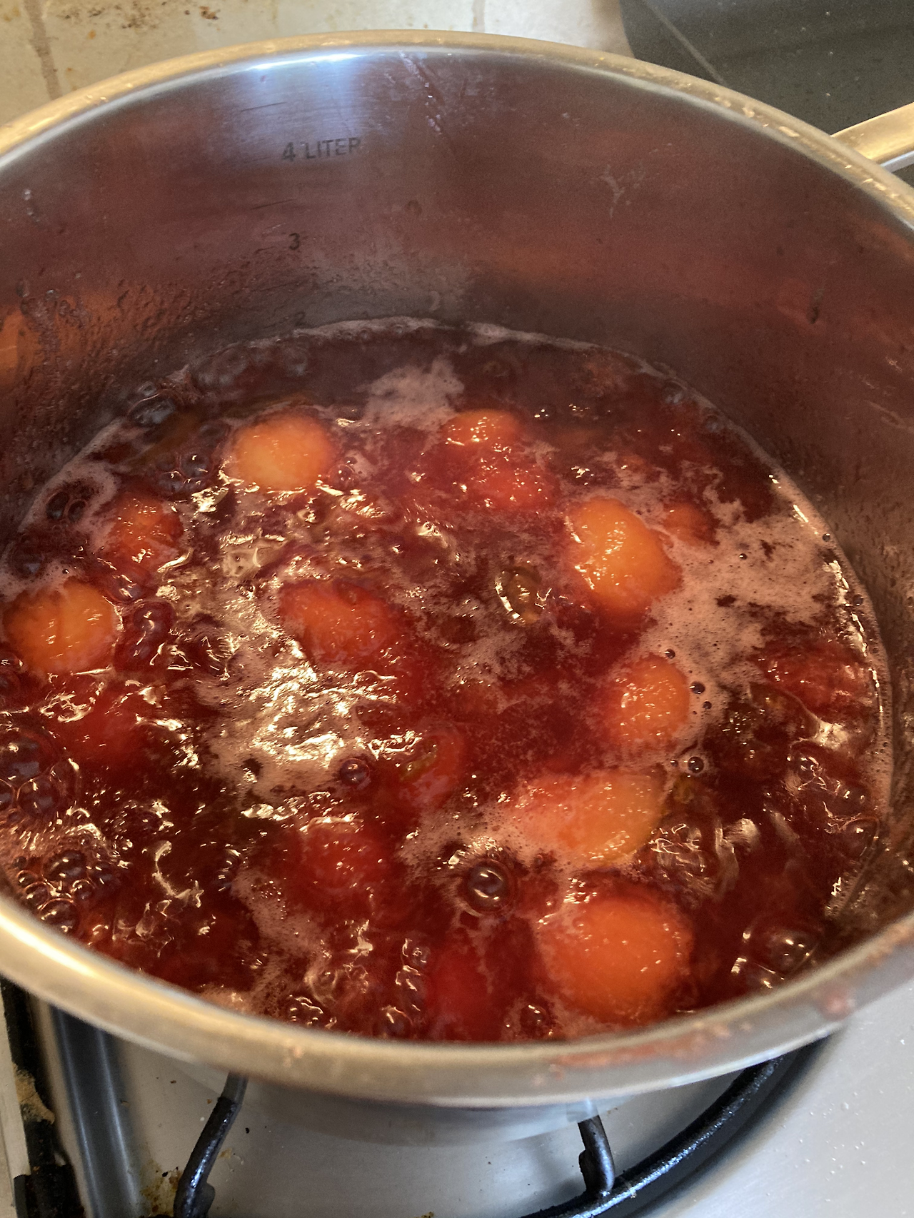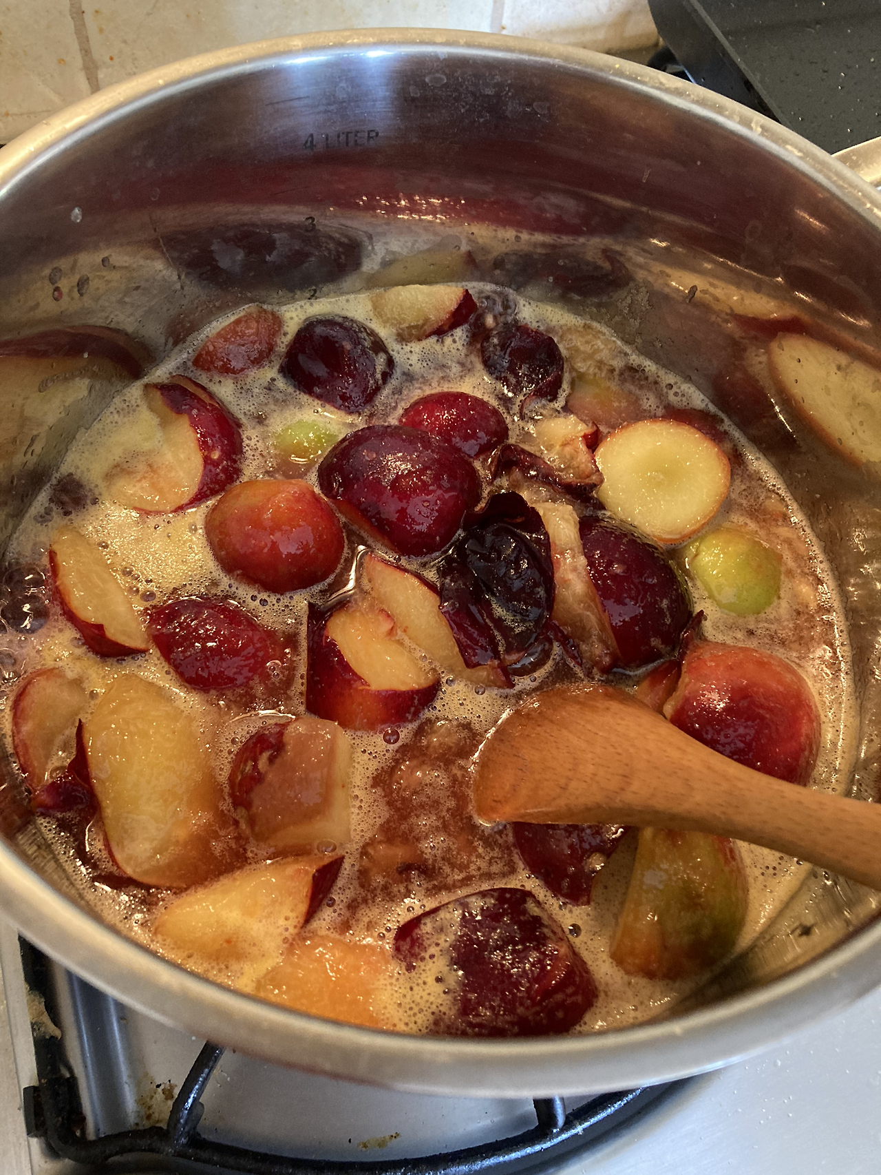 2. 설탕에 재워둔 자두를 냄비에 넣고 센 불에 끓인다.