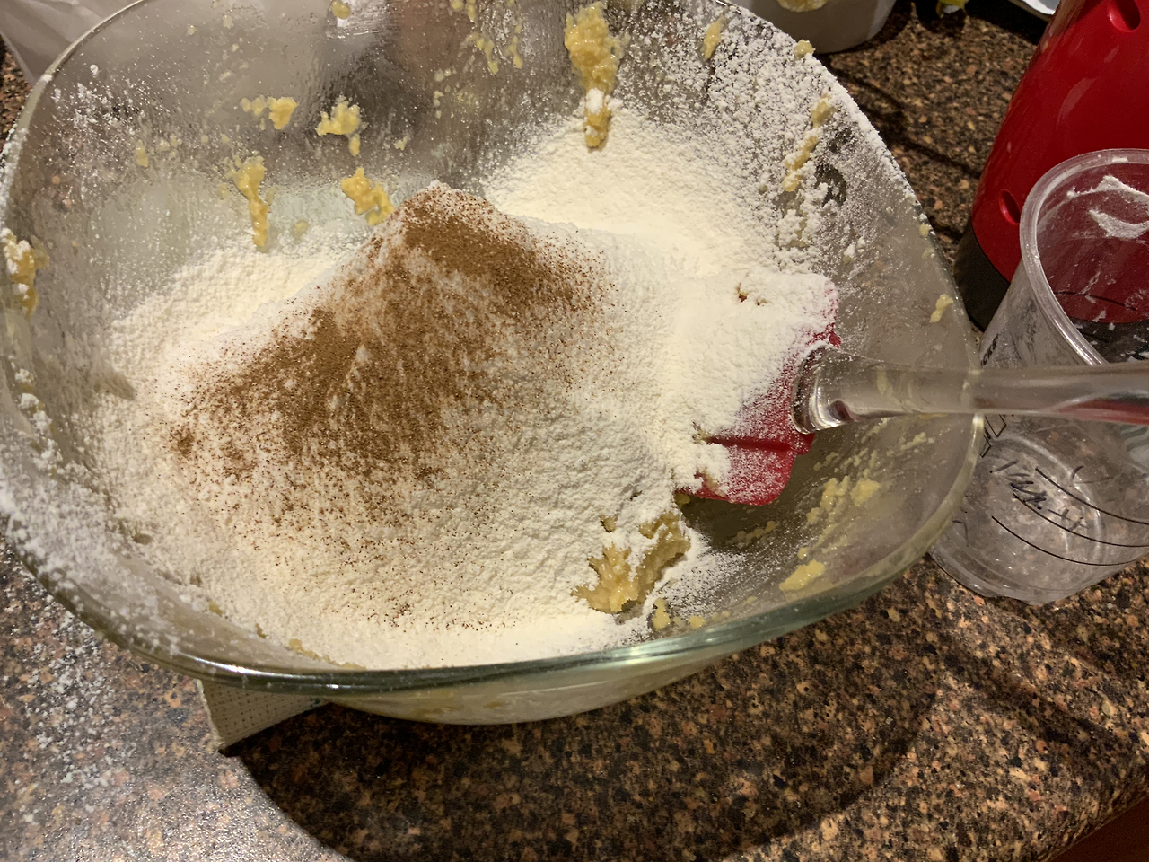 2. 밀가루를 체에 쳐서 바닐라 엑스트랙 그리고 시나몬 가루를 아주 조금 1번에 섞는다. ** 쿠키는 너무 많이 치대면 돌처럼 딱딱해지는 경우가 있으니 주의할 것!