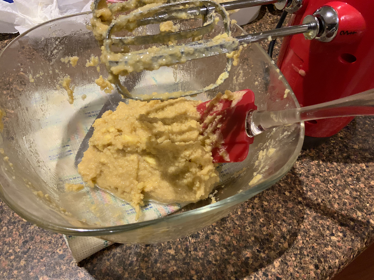 1. 차가운 버터를 잘게 잘라 보울에 담아둔다. 거기에 설탕과 소금 조금을 넣어 핸드믹서로 대충 섞는다.