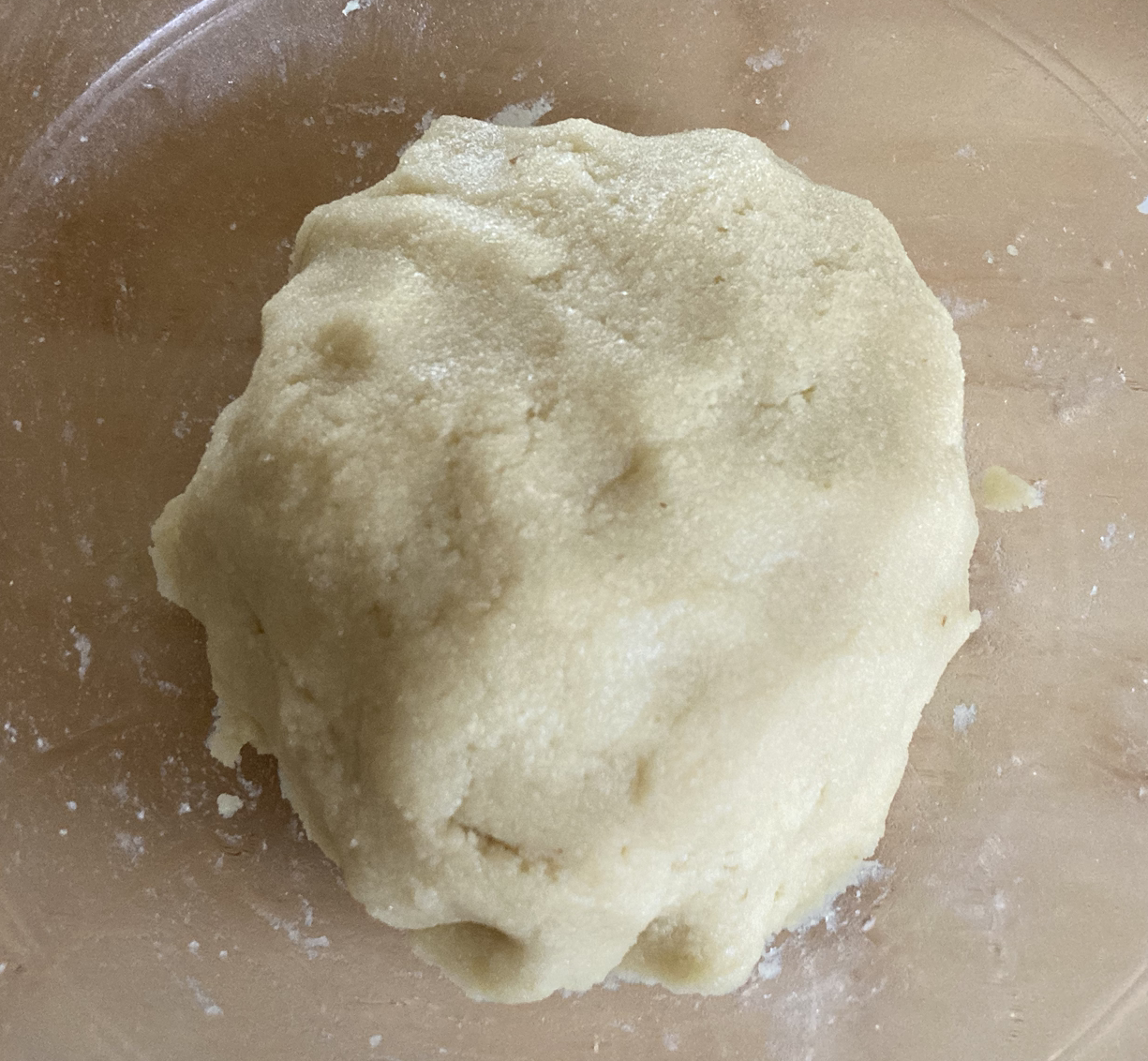 위의 둘을 섞어서 반죽을 만든다. 손으로 쿠키 반죽이 될 때까지 치댄다.
