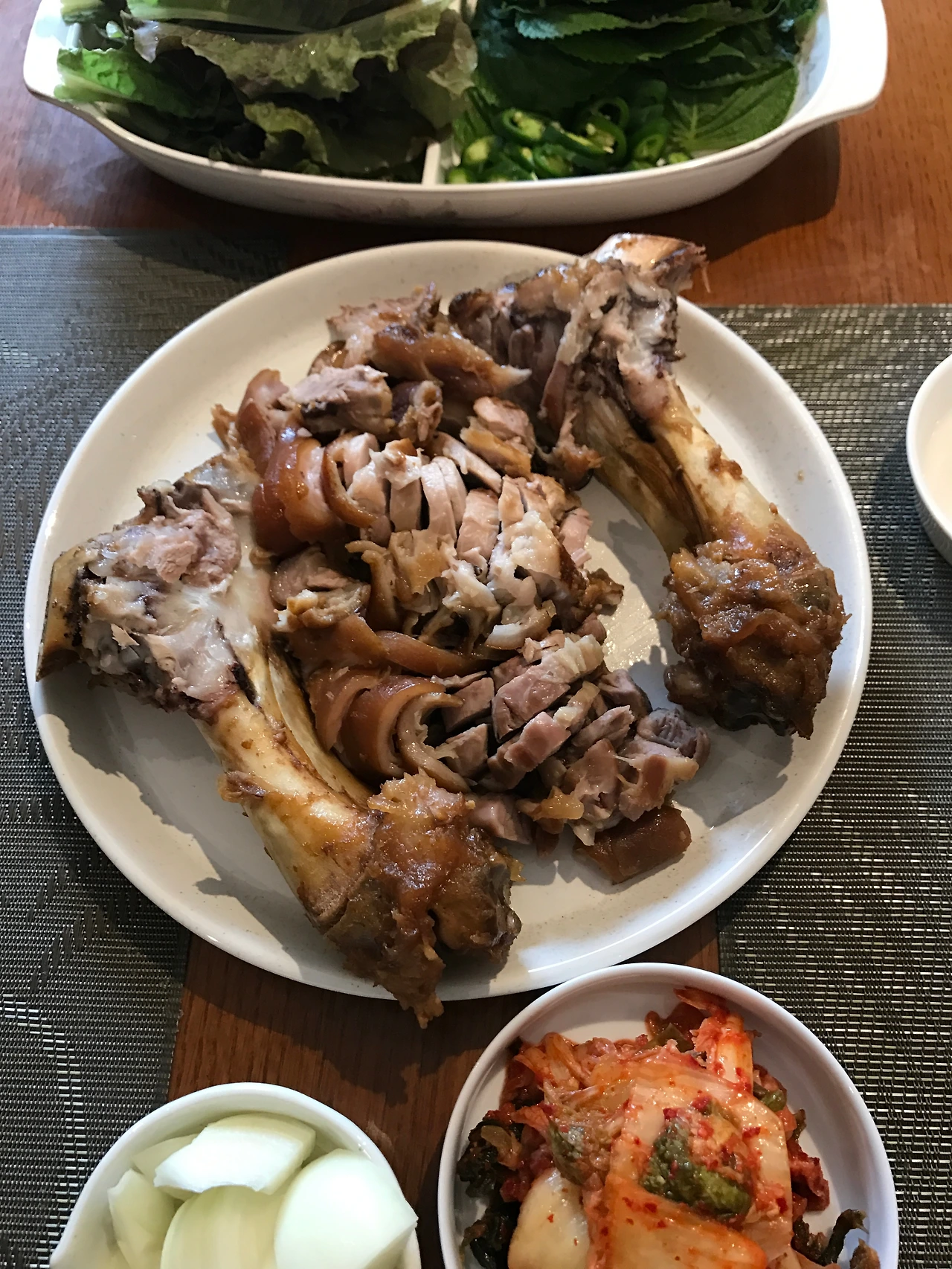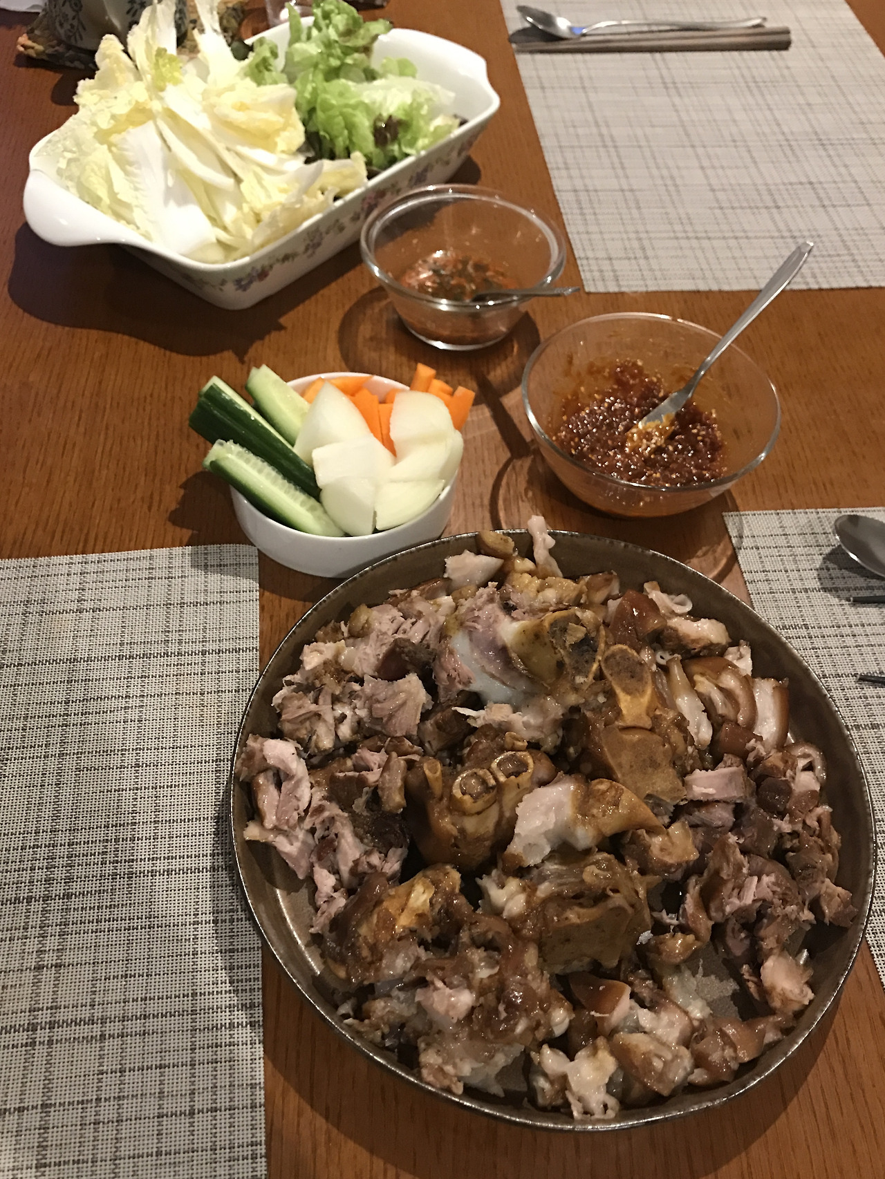 호주로 이민 온 이후로 우리의 식탁은 간단한 한 끼가 대부분이었다. 풍성한 한식상차림은 기대하지도 않고 산지 오래되었다. 그도 그럴 것이, 나와 남편은 요리에는 거의 관심도 없었고, 솔직히 얘기하자면 굳이 열심히 배울 필요도 없었다. 상상하는 그 맛을 내기에는 들이는 공보다 사 먹는 게 훨씬 나았기 때문이다. 그러다 여기 호주로 훌쩍 오게 되었다. 엄마의 레시피를 제대로 손에 쥐지 못한 채, 주방에 뛰어드니 매일이 새로운 시도이며, 두 번 다시 똑같은 맛을 만들어내기에는 뭔가 부족했다. 게다가 나와 남편은 한국 야식에 꽤 길들여진 사람들이었다. 손에 쥐어진 전화기로 치킨, 족발, 신선한 바로 뜬 생선회 그리고 닭발이며 저녁식사 후 찾아드는 아쉬움을 달래기엔 정말 이것만 한 것이 있으랴. 그중에서 족발은 그리운 야식메뉴 중에 하나였다.