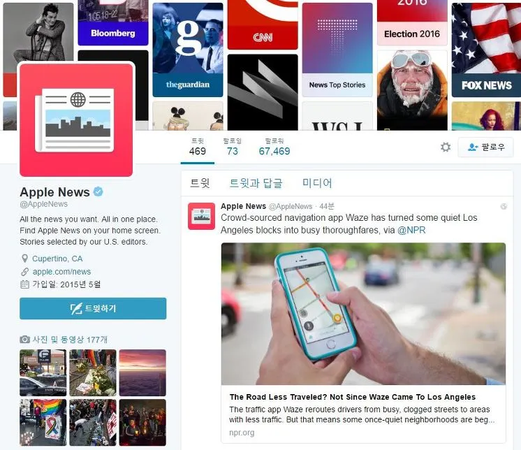 ▲ 애플 뉴스(@AppleNews) 트위터 캡처화면